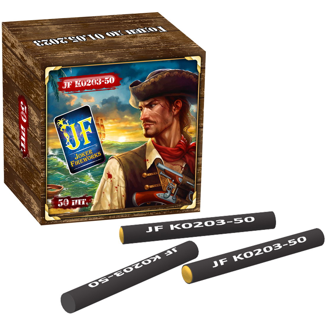 Представь, что сейчас XVII век, в Карибском море плавают десятки кораблей, и трюм каждого набит кучами драгоценностей и золота, а ты пират и грабишь эти судна! Правда вдохновляющая фантазия? Почувствовать себя настоящим буканьером даже в XXI веке тебе помогут петарды от "Джокера". С ними можно уверенно идти на абордаж даже крупного трехмачтовика. Упаковка таких пиратских петард включает целых ПЯТЬДЕСЯТ бомбочек размером 60х6. Нешуточный арсенал! С его помощью так легко устроить целое шоу из взрывов и хлопков! У всех вокруг голова пойдет кругом от таких звуков! Эти петарды принесут удачу и в открытом море, и на суше!