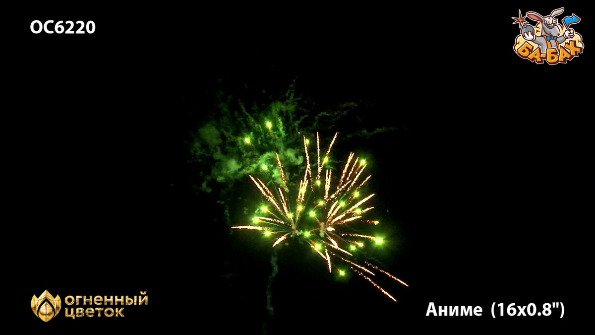 | Эффекты фейерверка: | Хризантемы, Трещащие облака, Сфера, Пион, Мерцание, Комета |