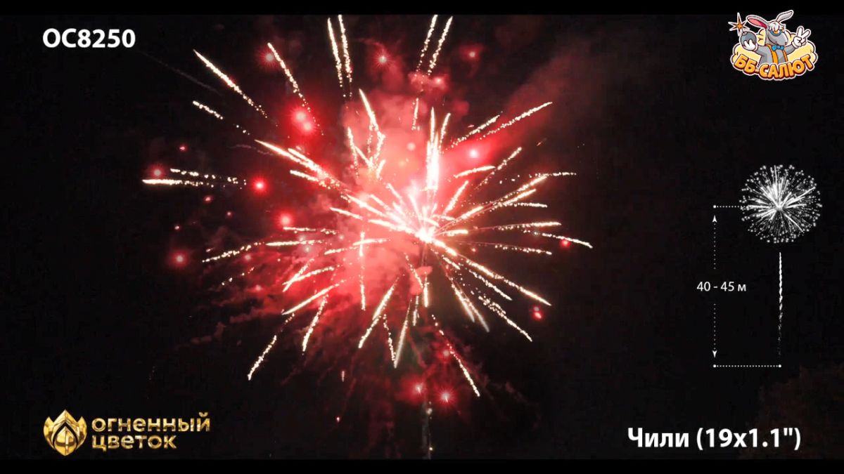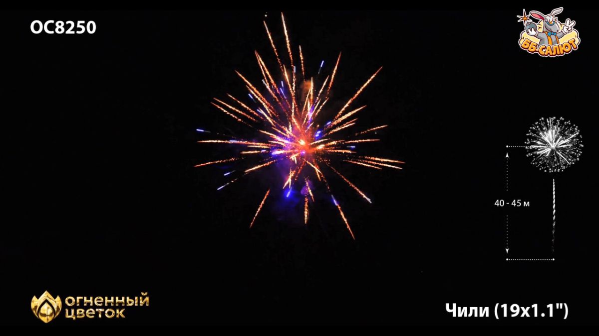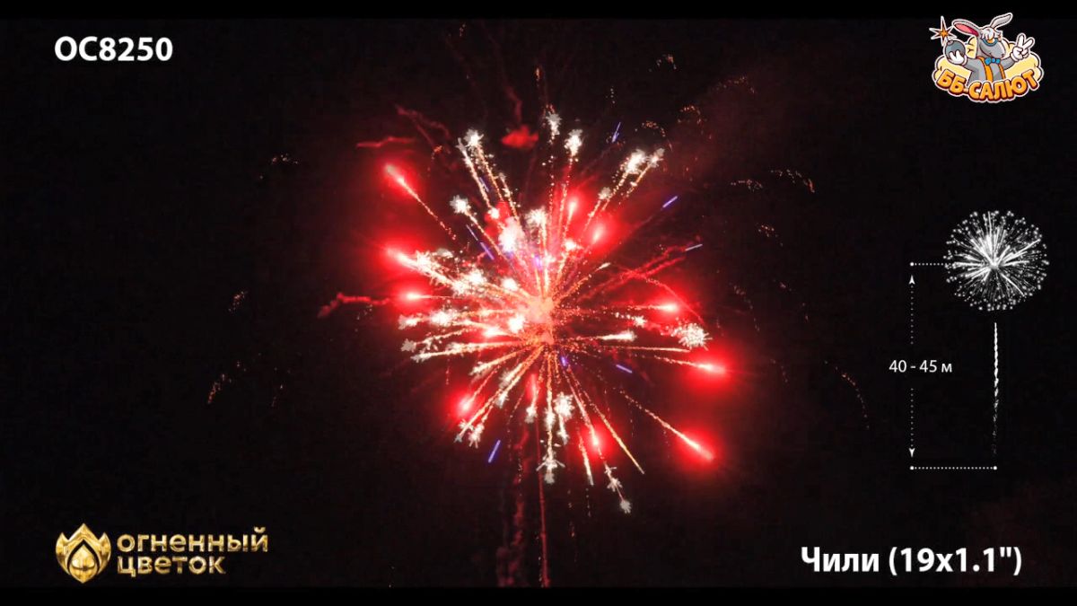 | Эффекты фейерверка: | Хризантемы, Трещащие облака, Пион, Мерцание, Комета, Огни |