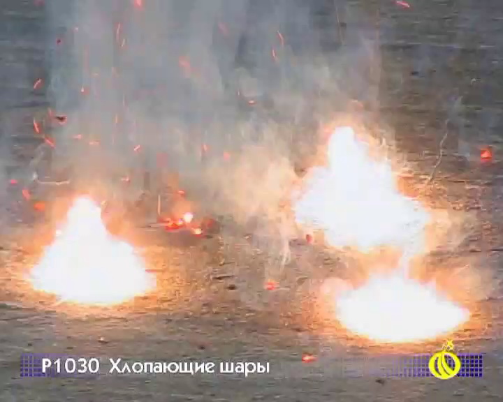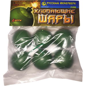 "Хлопающие шары" - классическое развлечение, маленькие фитильные петарды-бомбочки. Это зеленый пластмассовый шарик, примерно 2 см. в диаметре - поджигаете фитиль, и через непродолжительное время шар с громким хлопком взрывается, разбрасывая вокруг яркие трещащие огненные искры. В блоке находится 12 блистеров по 6 шариков. Самый популярный и любимый вариант "Хлопшаров" - производства "Русский Фейерверк"!