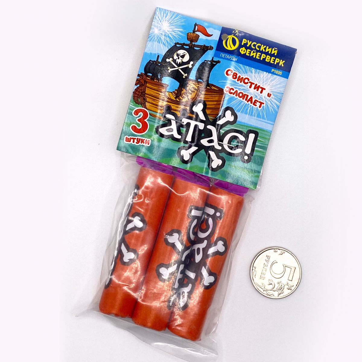 Корсар 3 (К-3) - это достаточно мощные терочные петарды, при разрыве такая петарда дает громкий хлопок, от которого у любого пробегает холодок по коже! Петарды из серии "Корсар" заслужили популярность за счет хорошей акустики взрыва, модель "Корсар-3" - яркий представитель этой линейки. Тёрочная петарда "Корсар-3" очень проста в использовании: достаточно чиркнуть серной головкой петарды о спичечный коробок, и немедленно отбросить в сторону. Каждая упаковка содержит целых 10 крупных петард, это позволит вам долгое время наслаждаться грохотом разрывов.