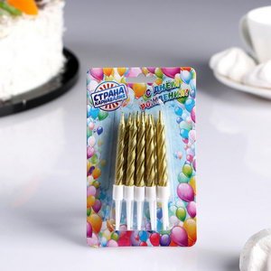 Свеча для торта "Грань" золотая - цифра "6" 7,8 см