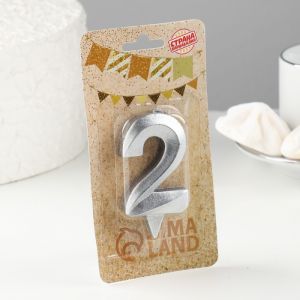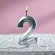 Свеча для торта "Грань" серебряная - цифра "2" 7,8 см