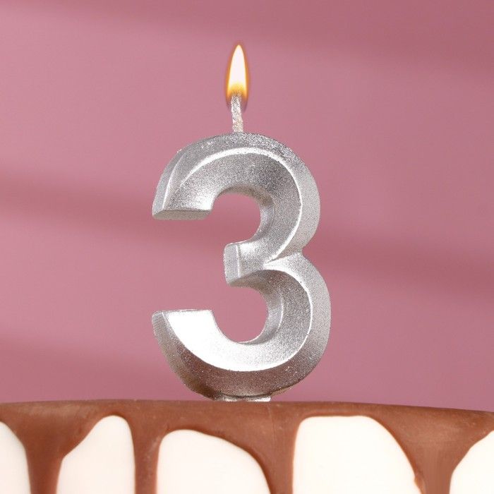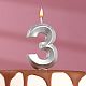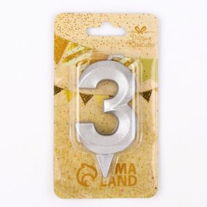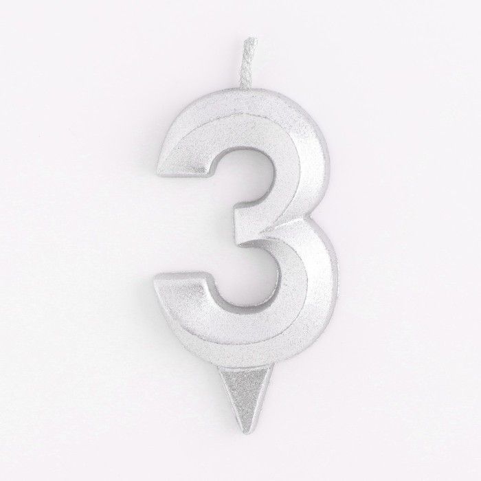 Свеча для торта "Грань" серебряная - цифра "3" 7,8 см