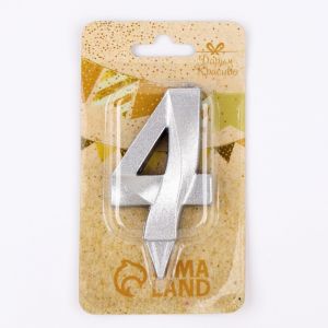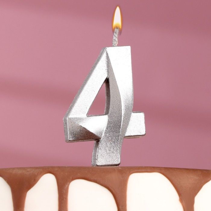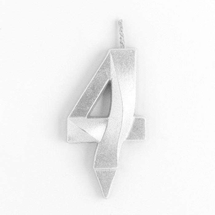 Свеча для торта "Грань" серебряная - цифра "4" 7,8 см