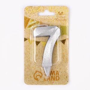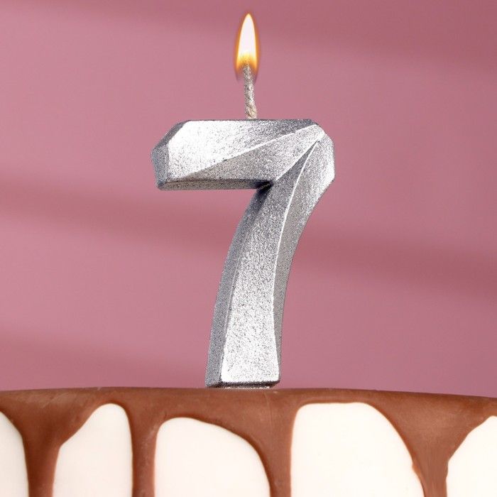 Свеча для торта "Грань" серебряная - цифра "7" 7,8 см