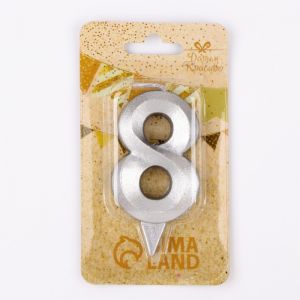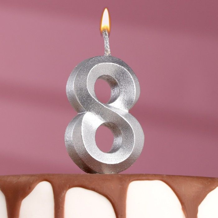 Свеча для торта "Грань" серебряная - цифра "8" 7,8 см