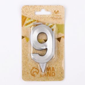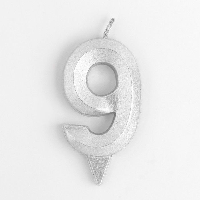 Свеча для торта "Грань" серебряная - цифра "9" 7,8 см
