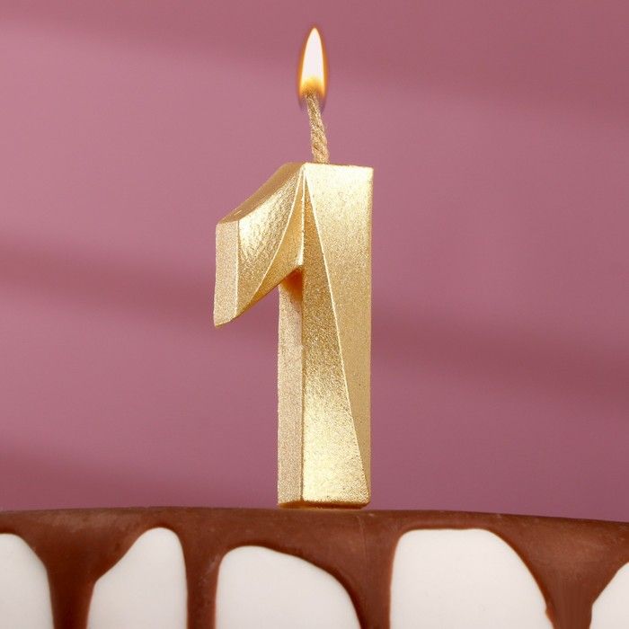 Свеча для торта "Грань" золотая - цифра "3" 7,8 см