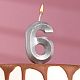 Свеча для торта "Грань" серебряная - цифра "6" 7,8 см