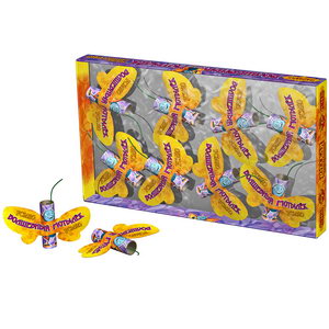 "Волшебный мотылек" - близкий аналог "Лунного цветка". Это летающий фейерверк, который взлетает, разбрасывая огненные искры, затем с громким жужжанием ускоряется. Вам несомненно понравится упаковка "Волшебного мотылька", которая сделана в виде характерной рамки с подложкой - в таких энтомологи коллекционируют бабочки. Начните свою коллекцию бабочек сегодня с "Волшебного мотылька"!