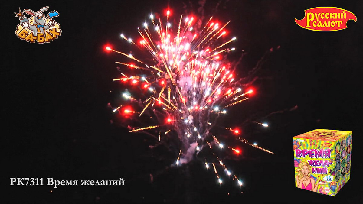 | Особенности фейерверка: | Выраженный финал, Звуковые эффекты |