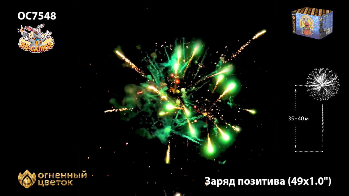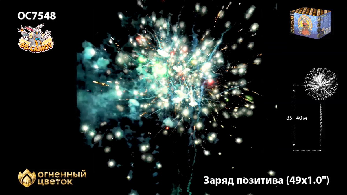 | Эффекты: Хризантемы, Искристый цветок, Комета, Трещащие облака, Пион, Мерцание |