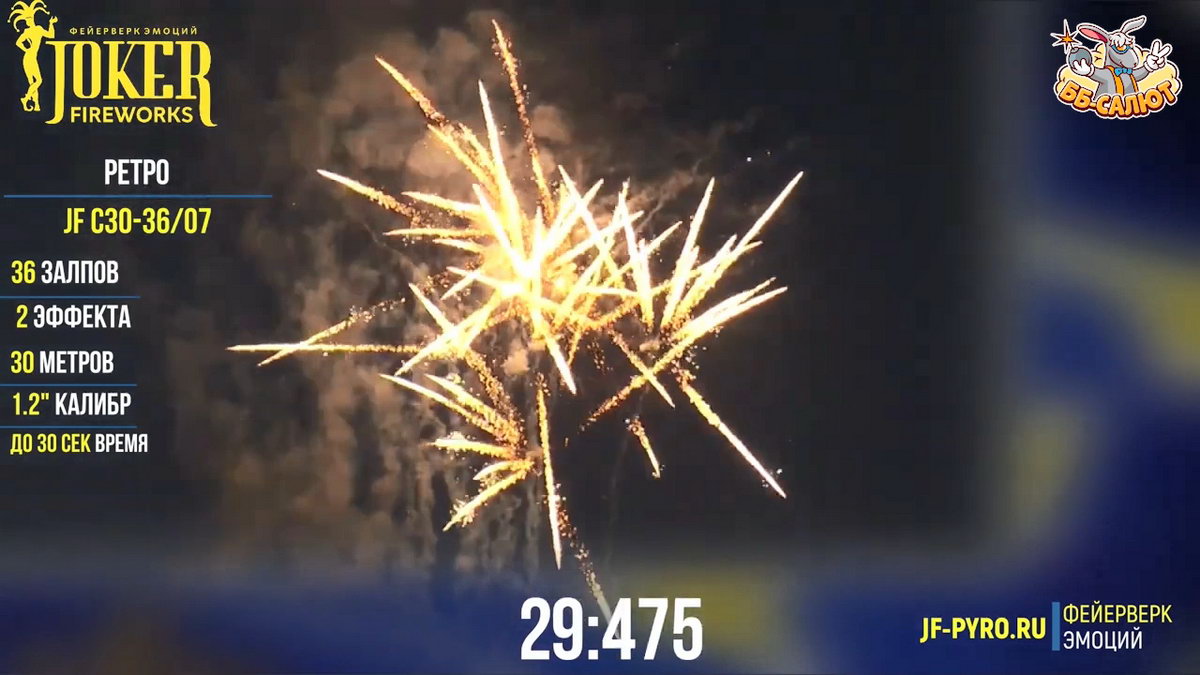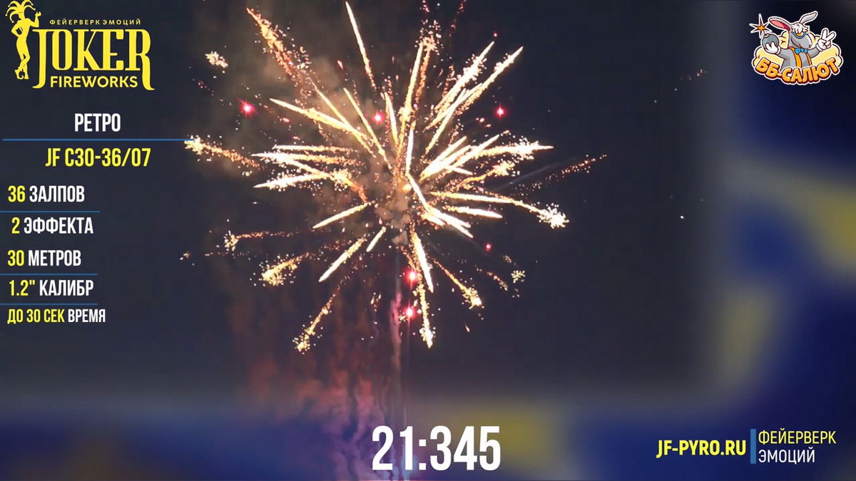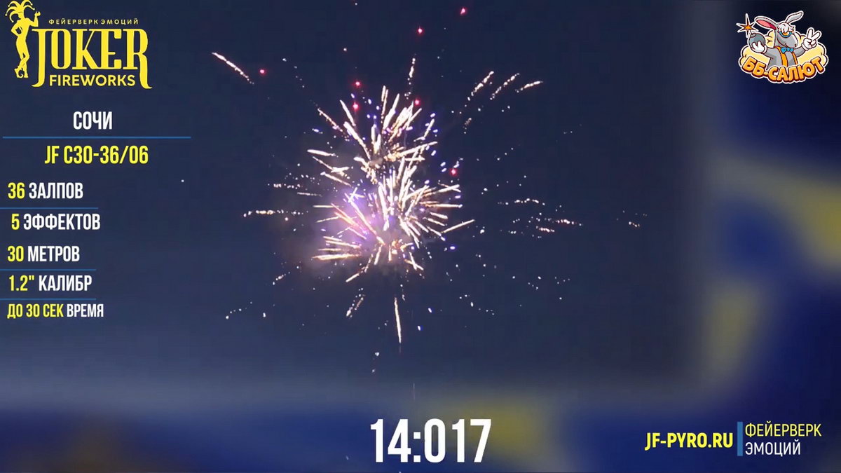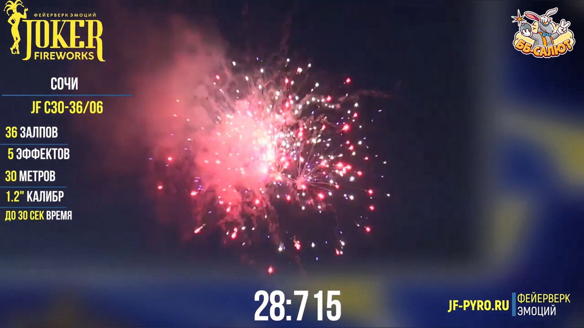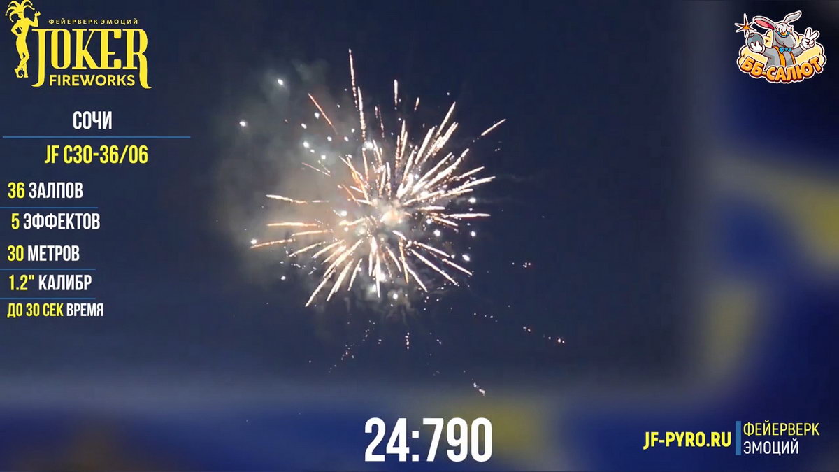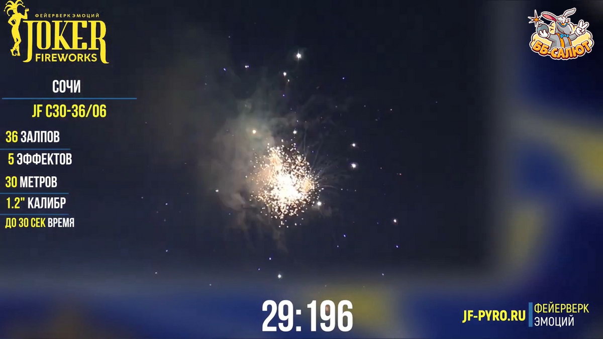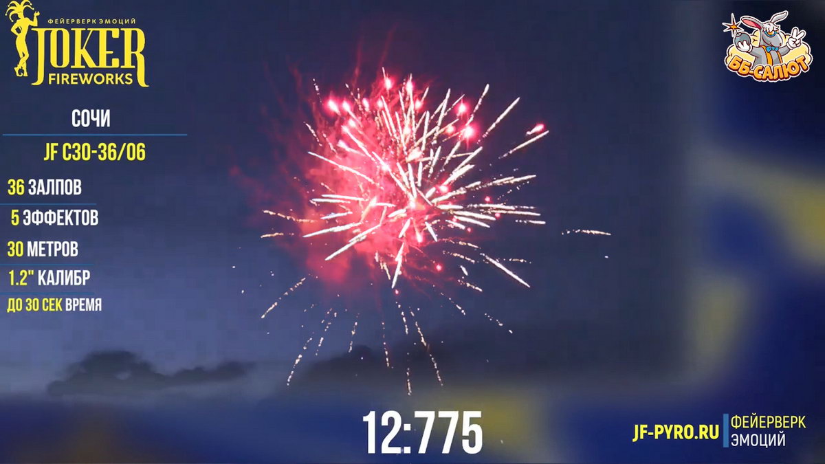 | Особенности фейерверка: | Выраженный финал, Звуковые эффекты |