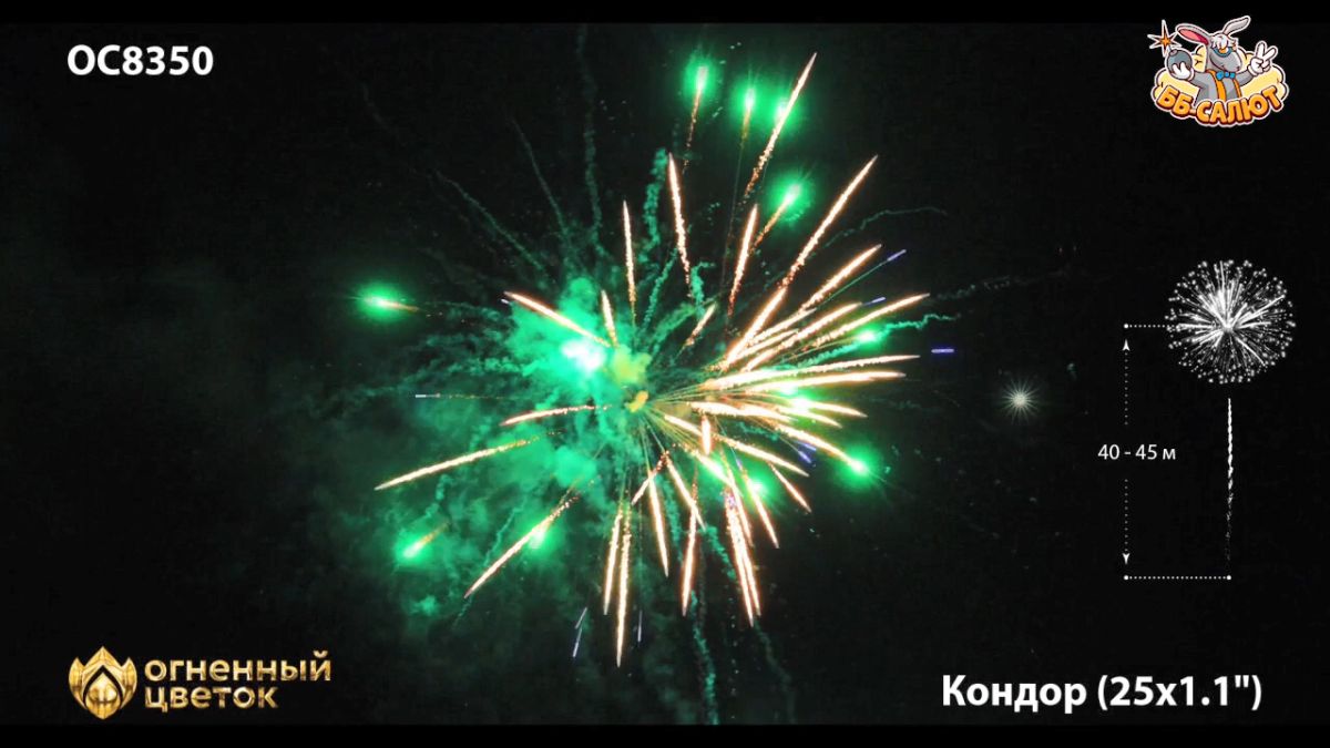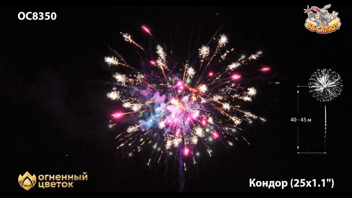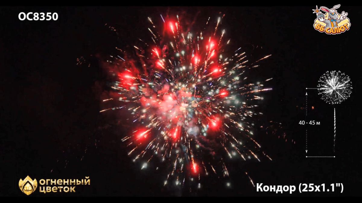 | Особенности фейерверка: | Выраженный финал, Звуковые эффекты |