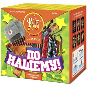 У автора оформления упаковки для этого салюта с чувством юмора и иронией все в порядке. Кто же еще мог быть изображен на коробке русского салюта, как не мужик и старый добрый медведь. Не хватает еще балалайки и матрешки. Но здесь и без них есть на что поглазеть. Например: на сферы из розовых огней с искрящимися хвостами золота и мерцания, объемные сферы из синих и жёлтых звёзд, оранжевые кометы с белыми хвостами и зелеными мерцающими огнями, ярко-малиновые огни, переходящие в золотые трещащие облака, игривые бесшумные змейки, золотые стрелы и синие огни. Финал - прекрасный насыщенный пышный цветок из множества медных стрел и чередующихся изумрудных, синих и мерцающих малиновых огоньков. Эффекты не приедаются, и в то же время без нагромождения и лишних ненужных деталей. Как раз то, что надо для торжества. И время для работы салюта не слишком долгое, так что он не успеет Вам наскучить. Наслаждайтесь отличным исполнением, яркой палитрой и занимательными эффектами этого безупречно новогоднего салюта!