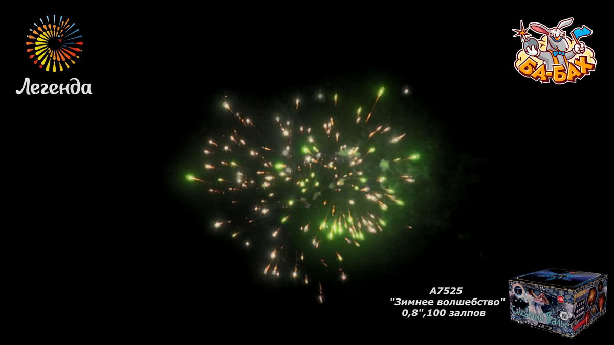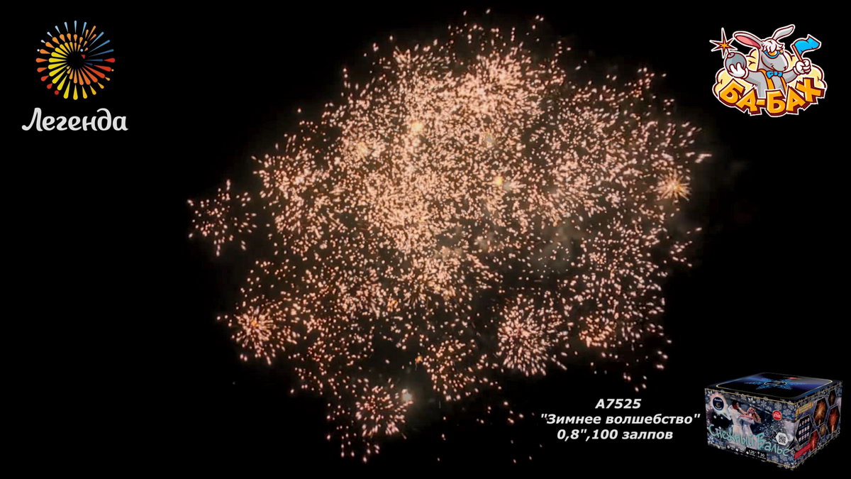 | Эффекты: Шуршащие паучки, Хризантемы, Трещащие облака, Сфера, Пион, Мерцание, Искристая ива, Дождь |