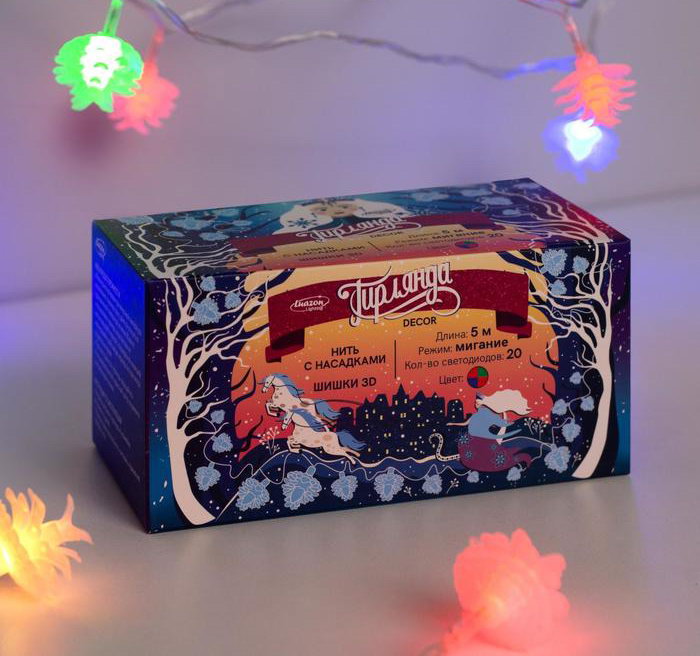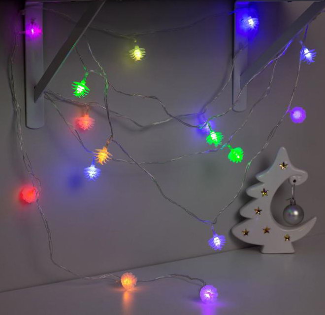 Гирлянда елочная "Шишки сосновые" разноцветная 5м