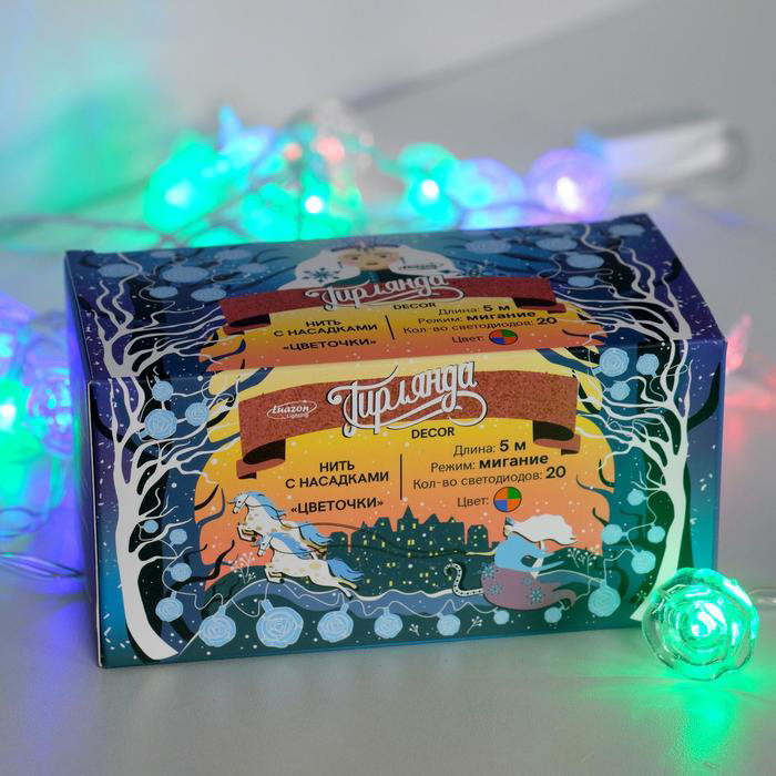 Гирлянда елочная "Цветочки" разноцветная 5м