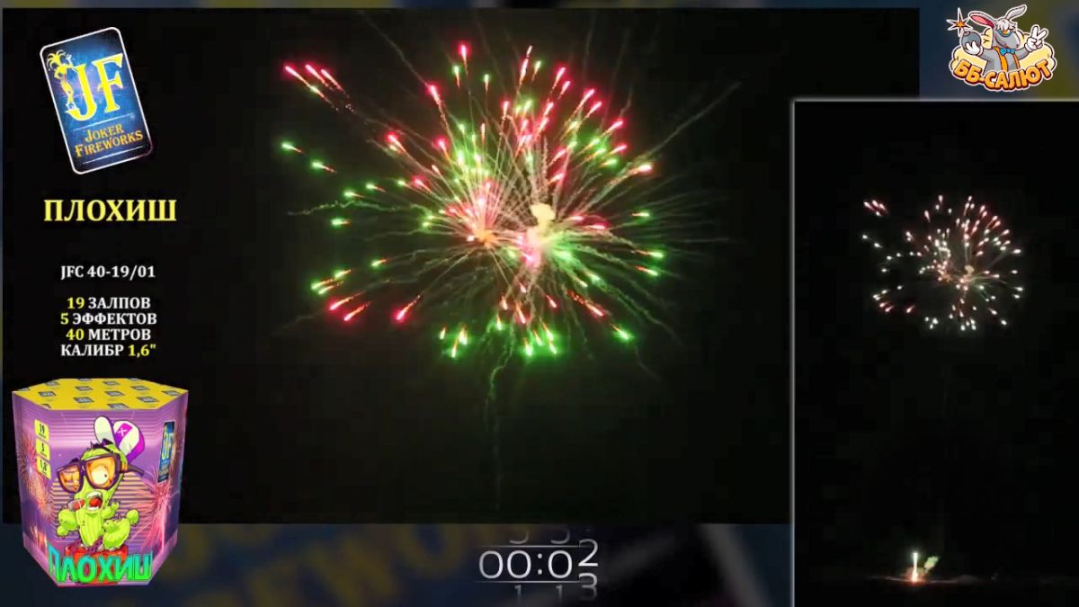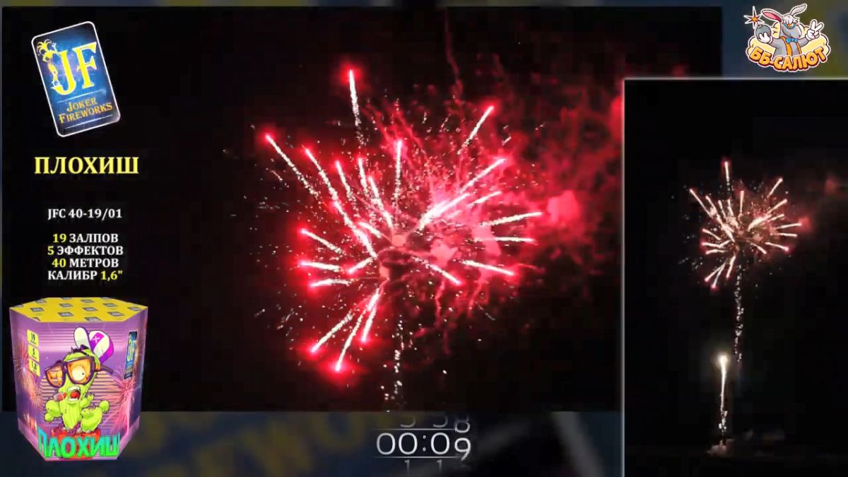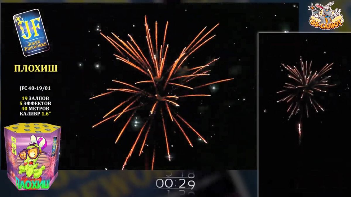 | Особенности фейерверка: | Выраженный финал, Звуковые эффекты |