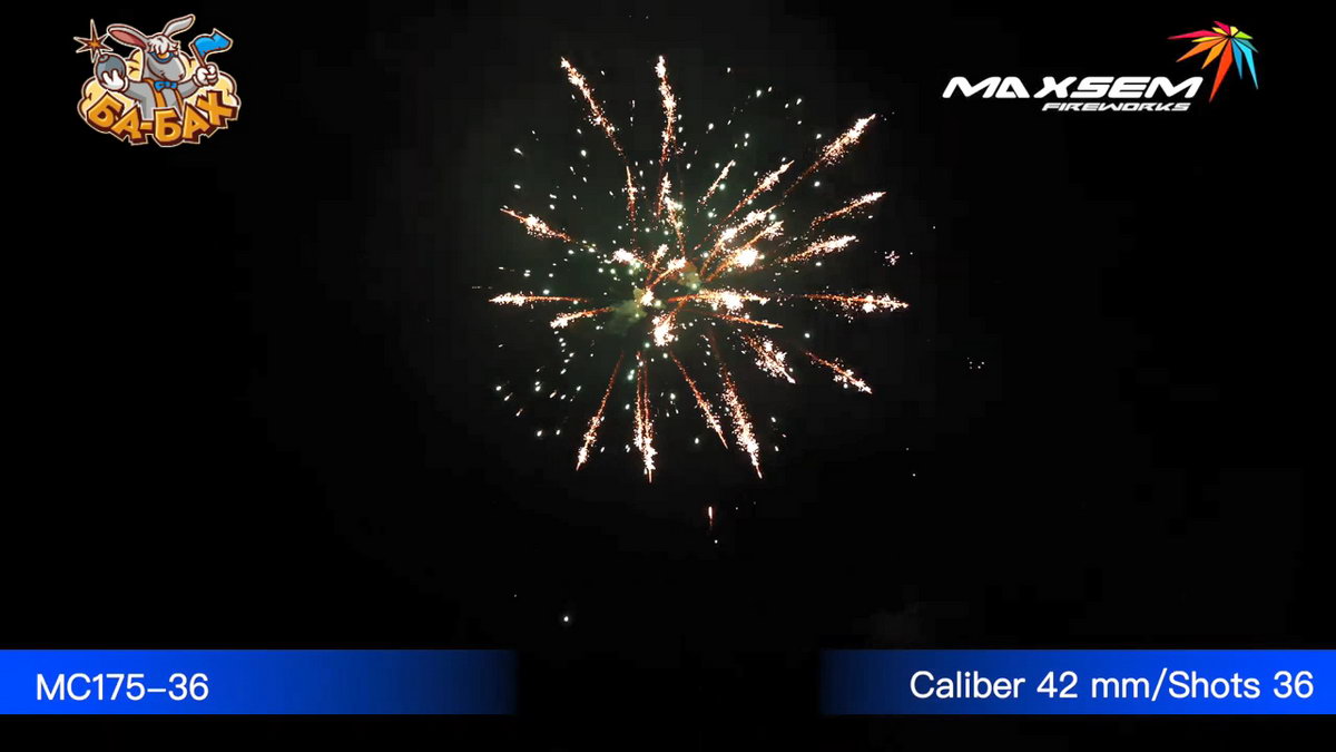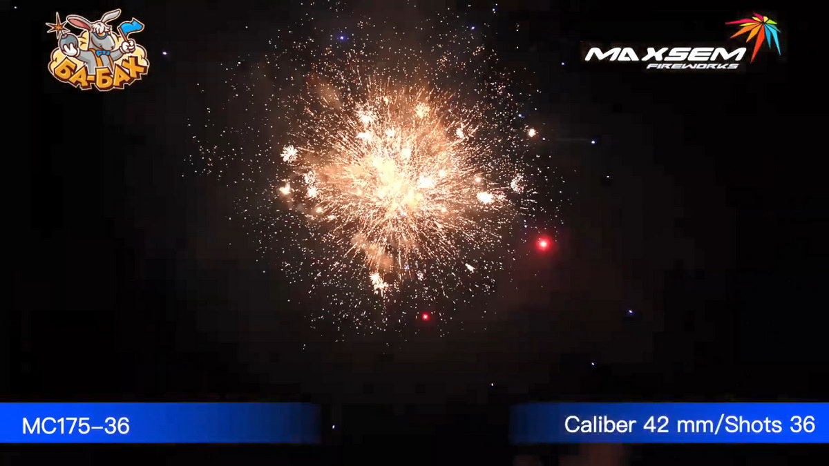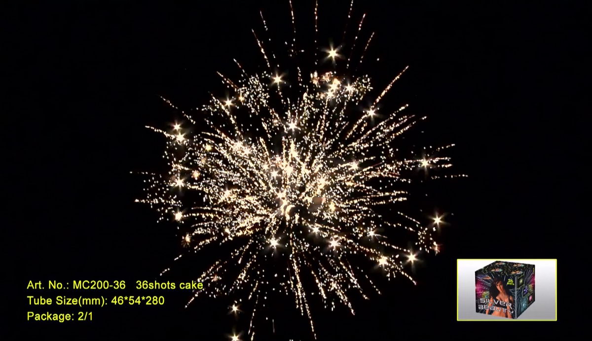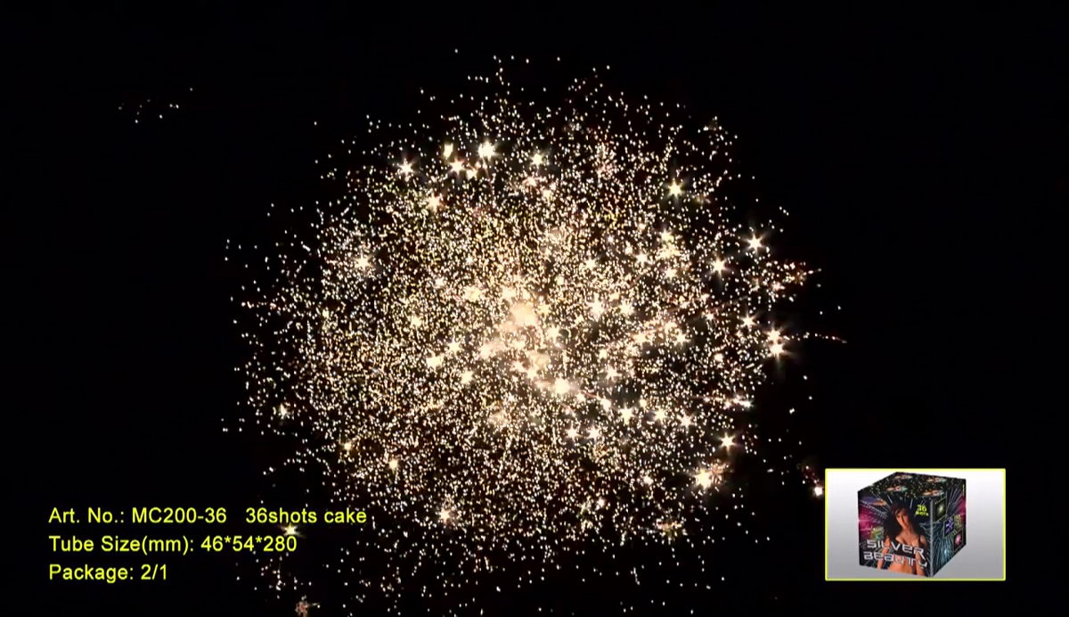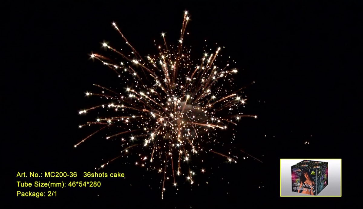 | Эффекты фейерверка: | Трещащие облака, Пион, Искристая ива, Парчовая корона, Кокос, Хризантемы |