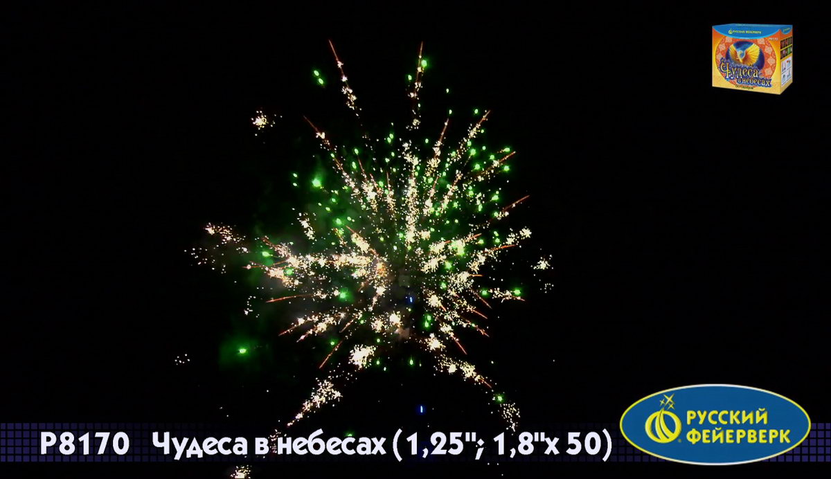 | Особенности фейерверка: | Выраженный финал, Звуковые эффекты |
