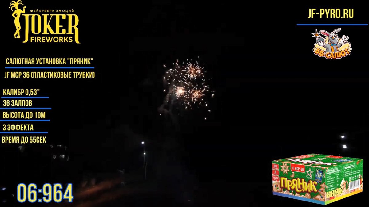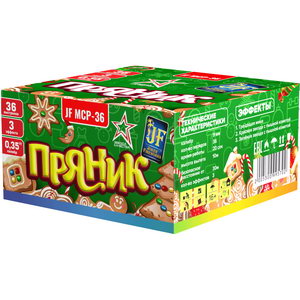 Фейерверк Пряник набирает высоту 10 метров и включает в себя 36 залпов. Зрители смогут насладиться красной и зеленой звездой с пышной кометой. При каждом залпе высоко в небо взлетают змейки, которые сопровождаются ярким и веселым потрескиванием. Это десятки искр серебристого цвета, вспыхивающие на темном фоне ночного неба. А похожи они на самые настоящие то возникающие, то исчезающие пряники. Хлопки, треск, яркие искры - это то, что нужно, чтобы вечер стал веселым!
