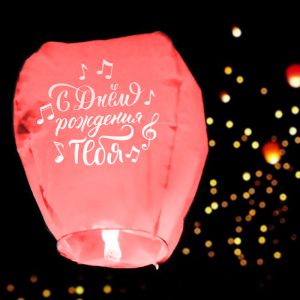 Небесный фонарик "С днём рождения тебя! Ноты" (розовый)