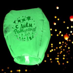 Небесный фонарик "С днём рождения тебя! Ноты" (зеленый)
