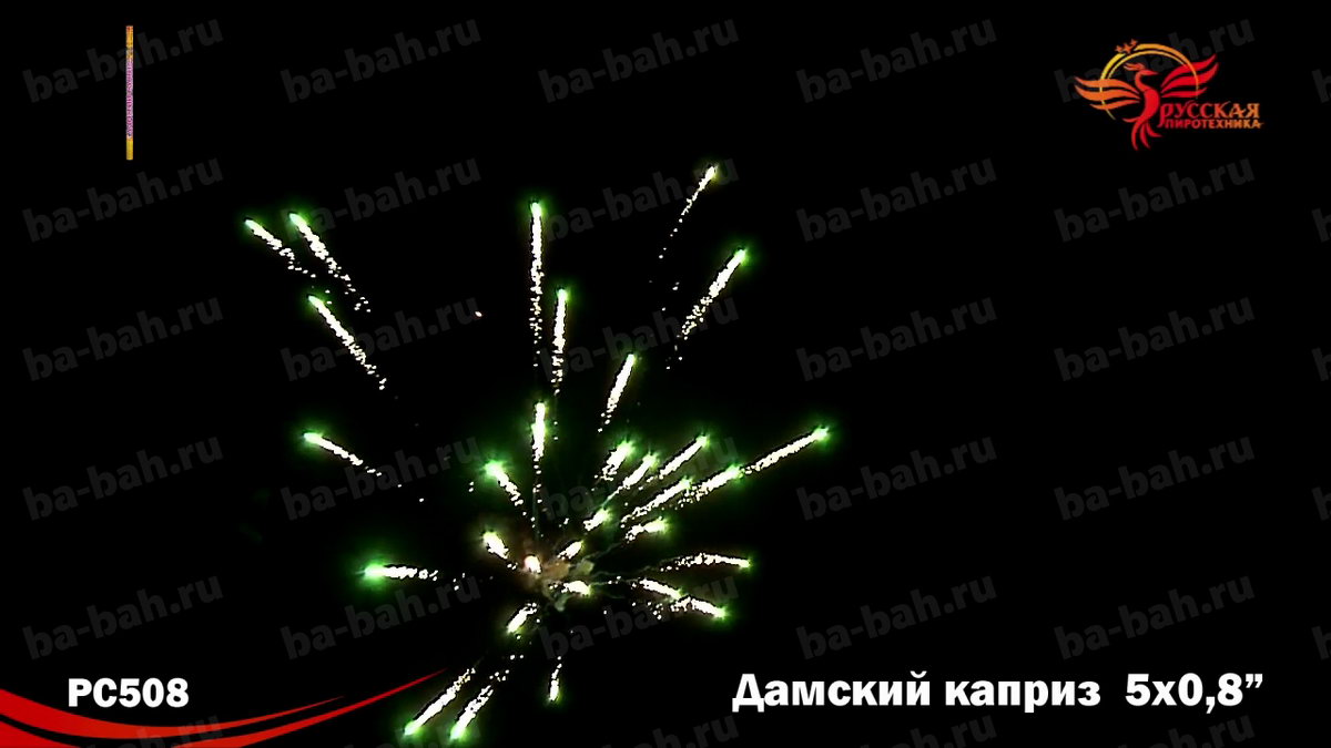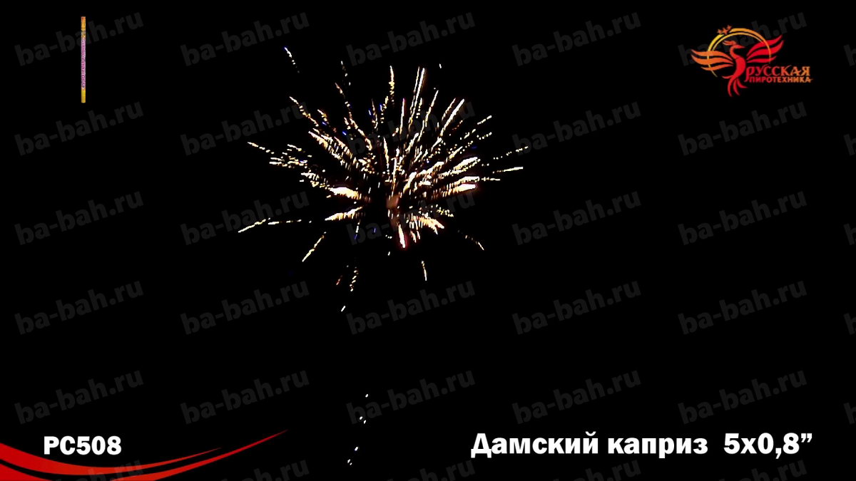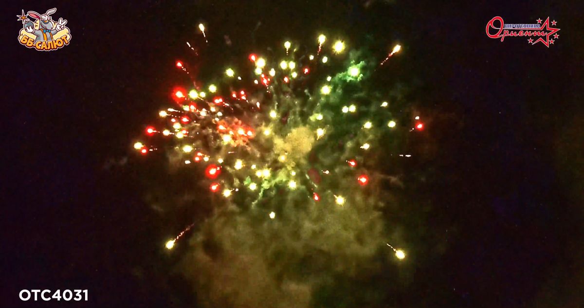 | Эффекты фейерверка: | Трещащие облака, Пион, Парчовая корона, Мерцание, Кокос, Звезды |