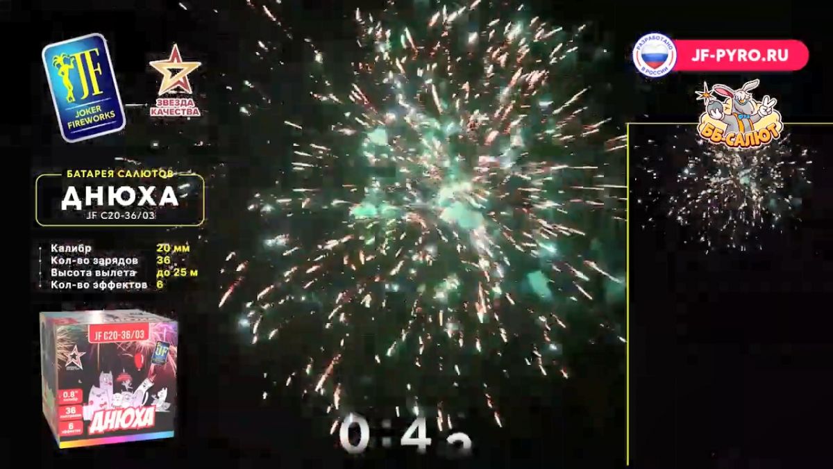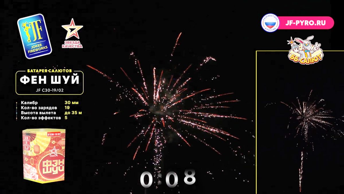 | Особенности фейерверка: | Выраженный финал, Звуковые эффекты |