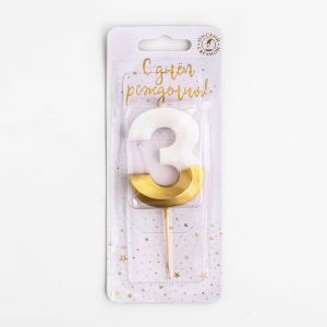 Свеча для торта "Грань" золотая - цифра "3" 7,8 см