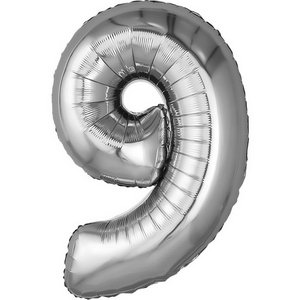 Воздушный шарик 32" Цифра 9 / Серебряный