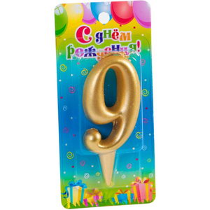 Свеча для торта "Грань" золотая - цифра "6" 7,8 см