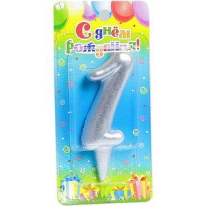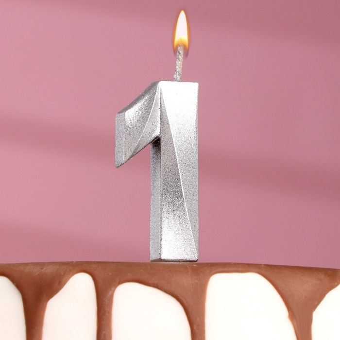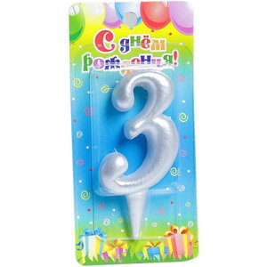 Свеча для торта "Грань" серебряная - цифра "3" 7,8 см