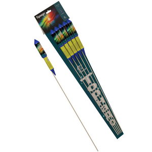 Эти ракеты очень похожи на "ракеты ассорти", превосходя их в размере и мощности. В упаковке с надписью "Ракеты Ягуар" находится 6 небольших ракет с деревянными стабилизаторами. Пиротехнический эффект - красно-зеленые букеты с мерцанием