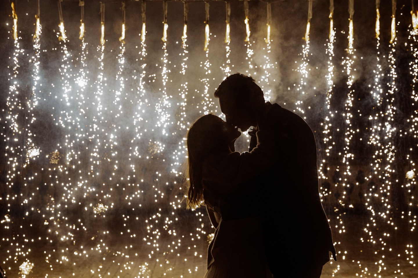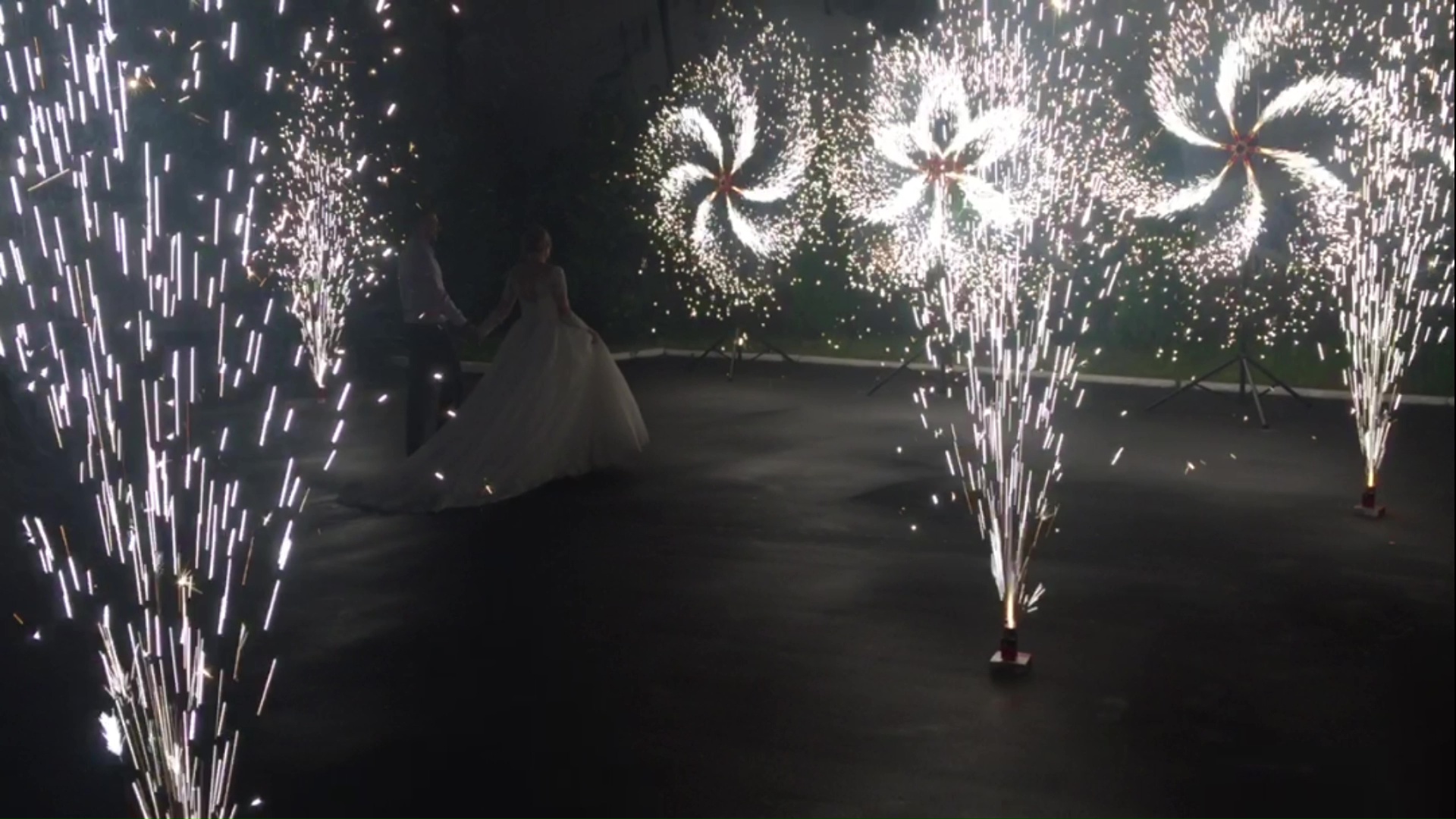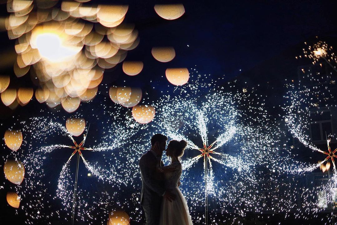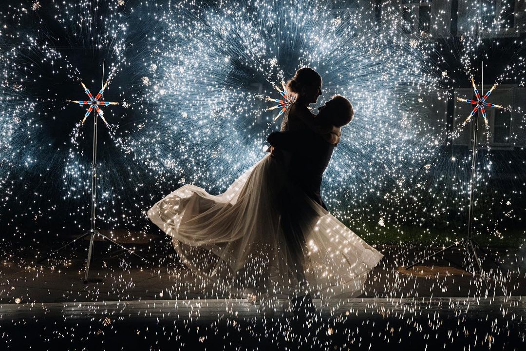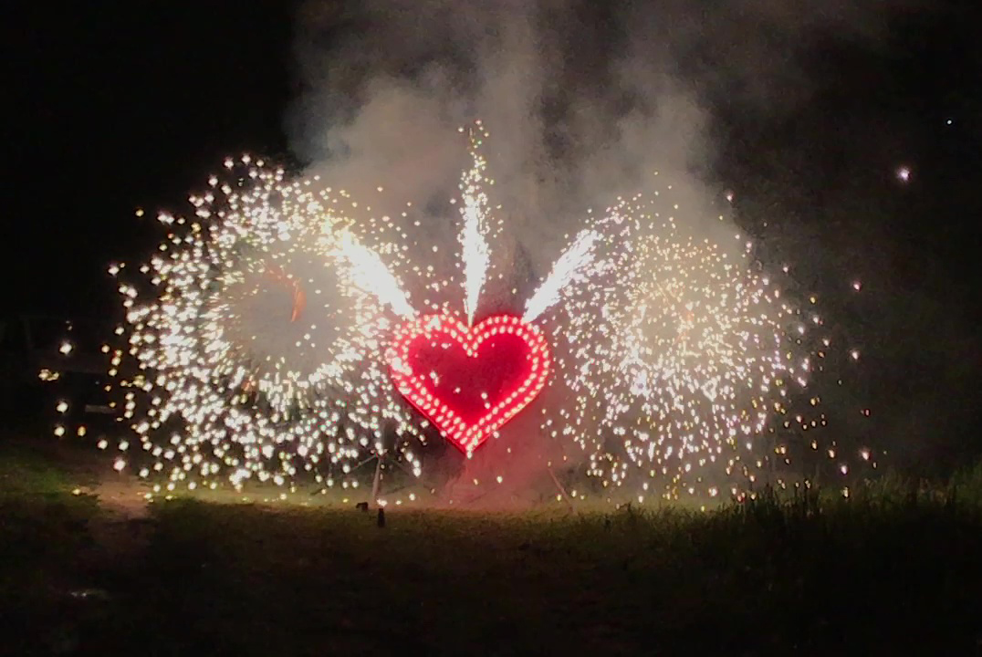 Фейерверк-шоу: огненное сердце и две буквы (инициалы молодых) с дополнительным светодиодным контуром