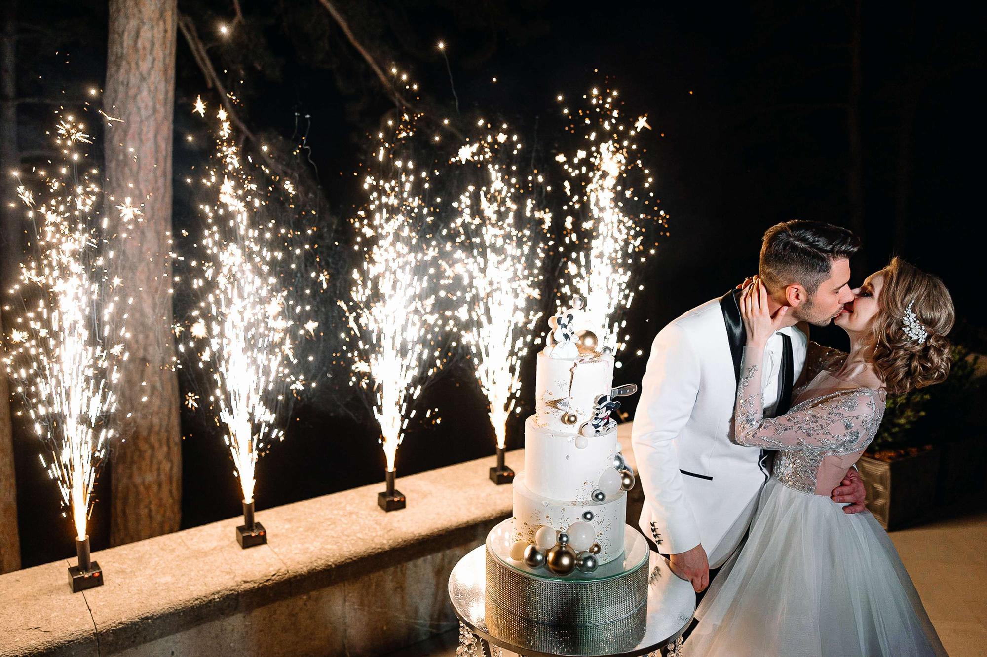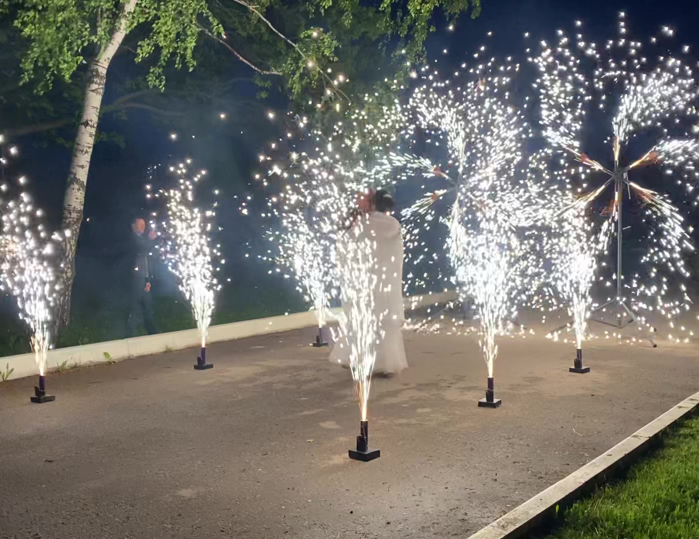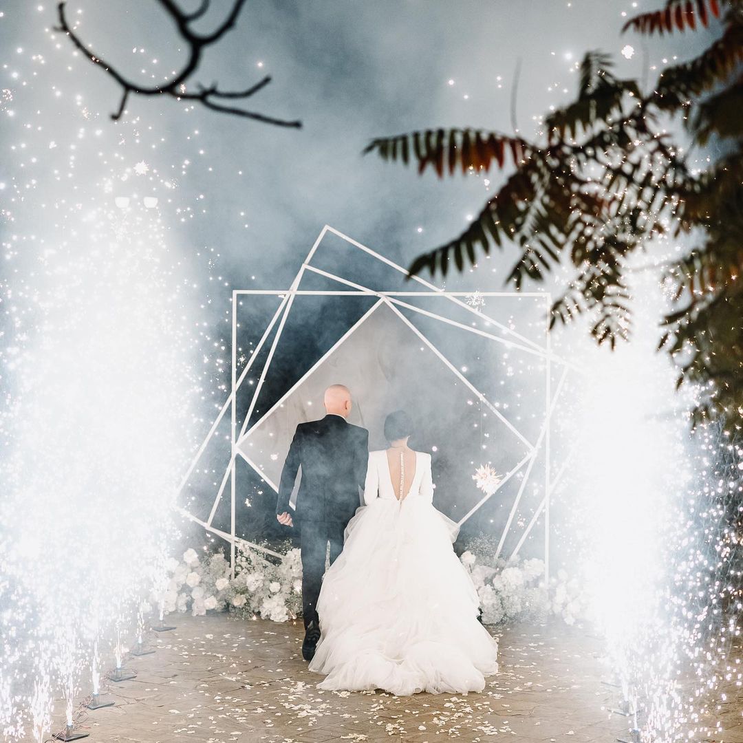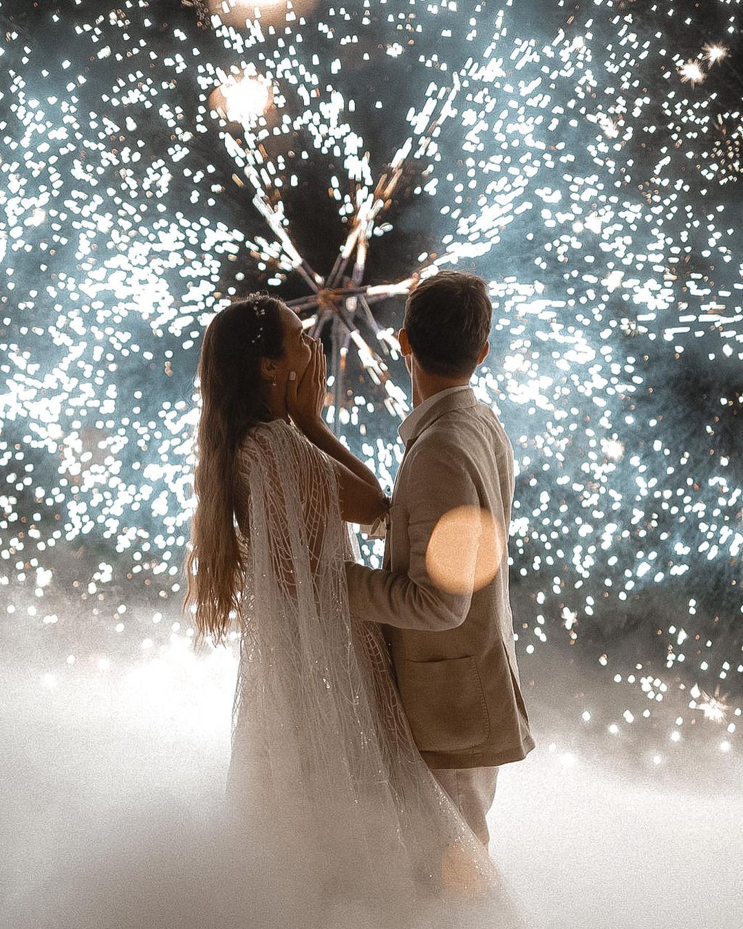 Фейерверк-шоу: огненное сердце и две буквы (инициалы молодых) с дополнительным светодиодным контуром