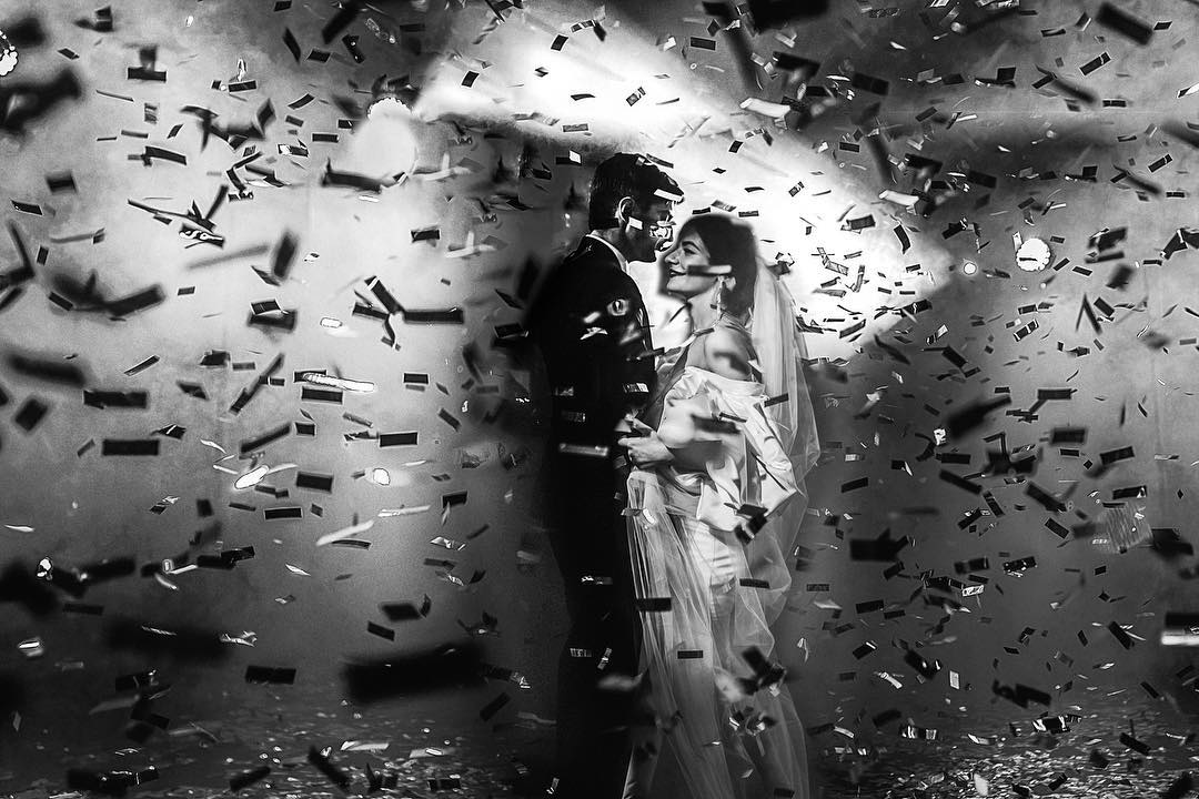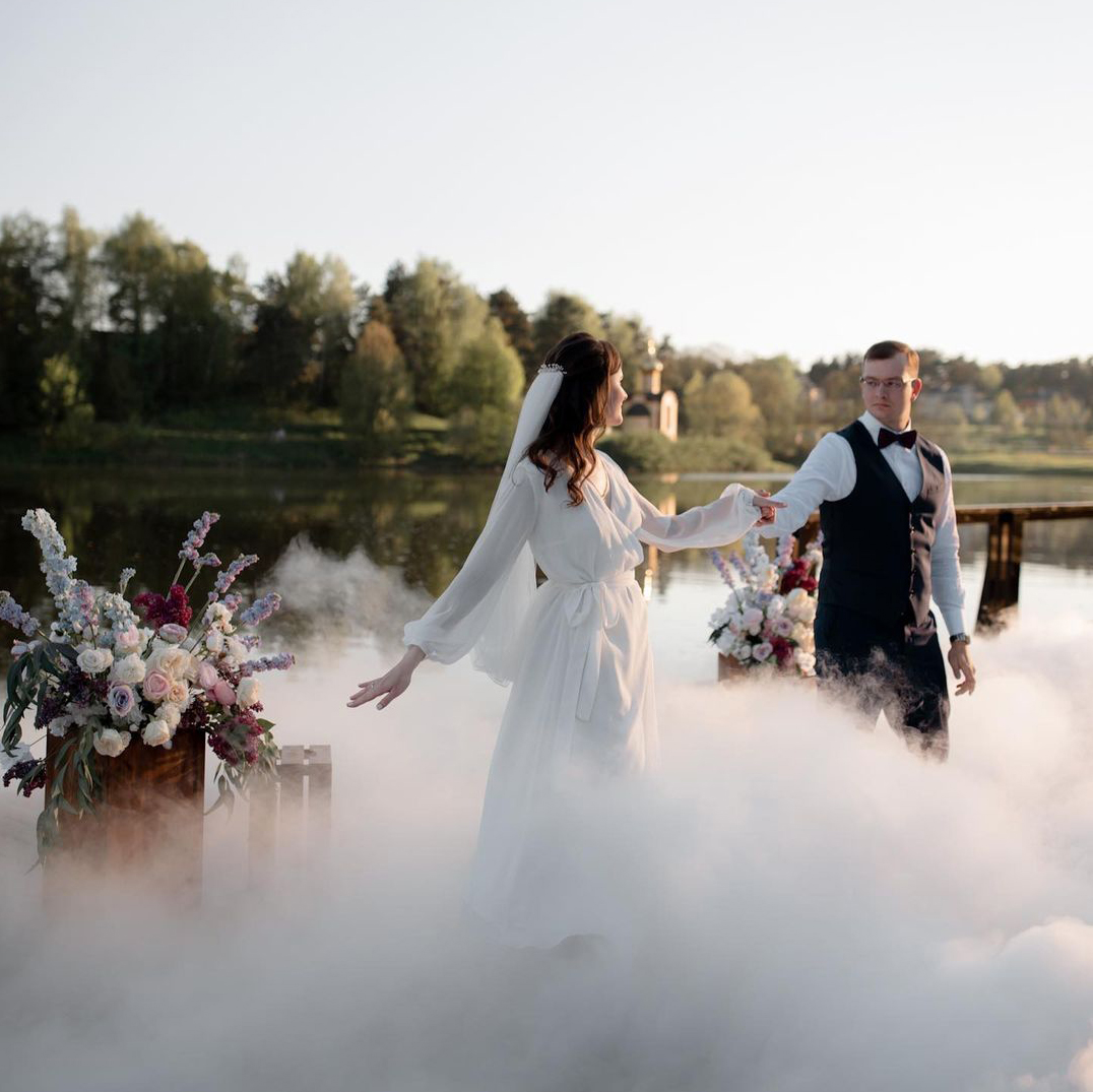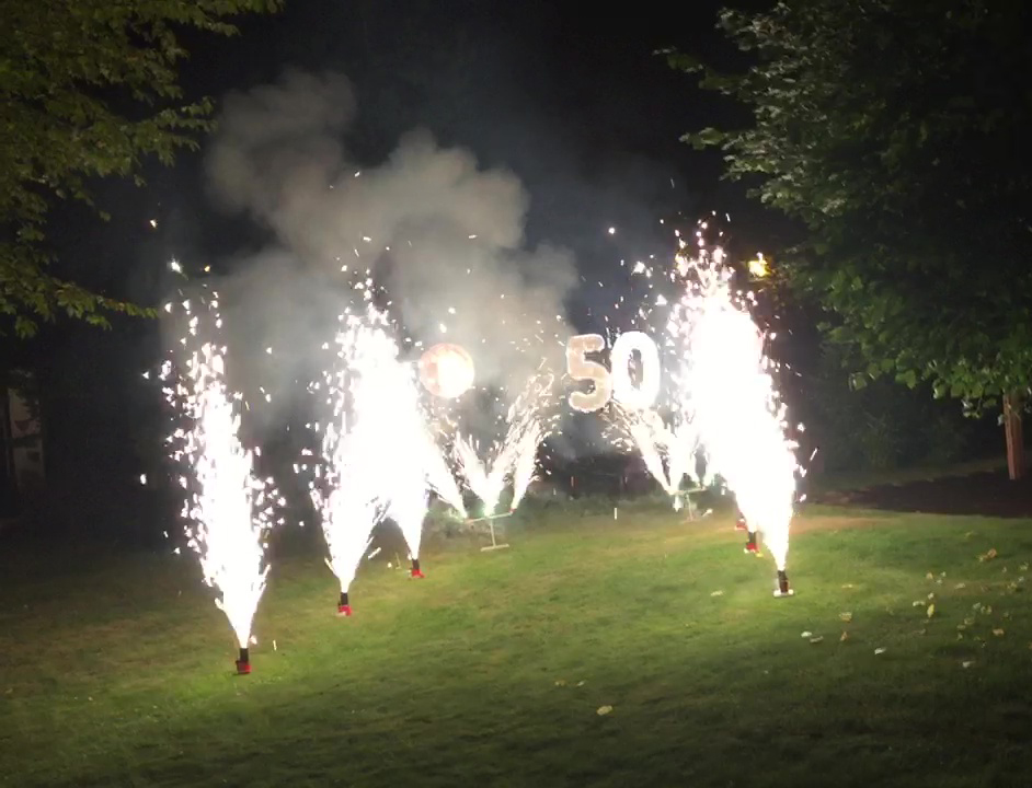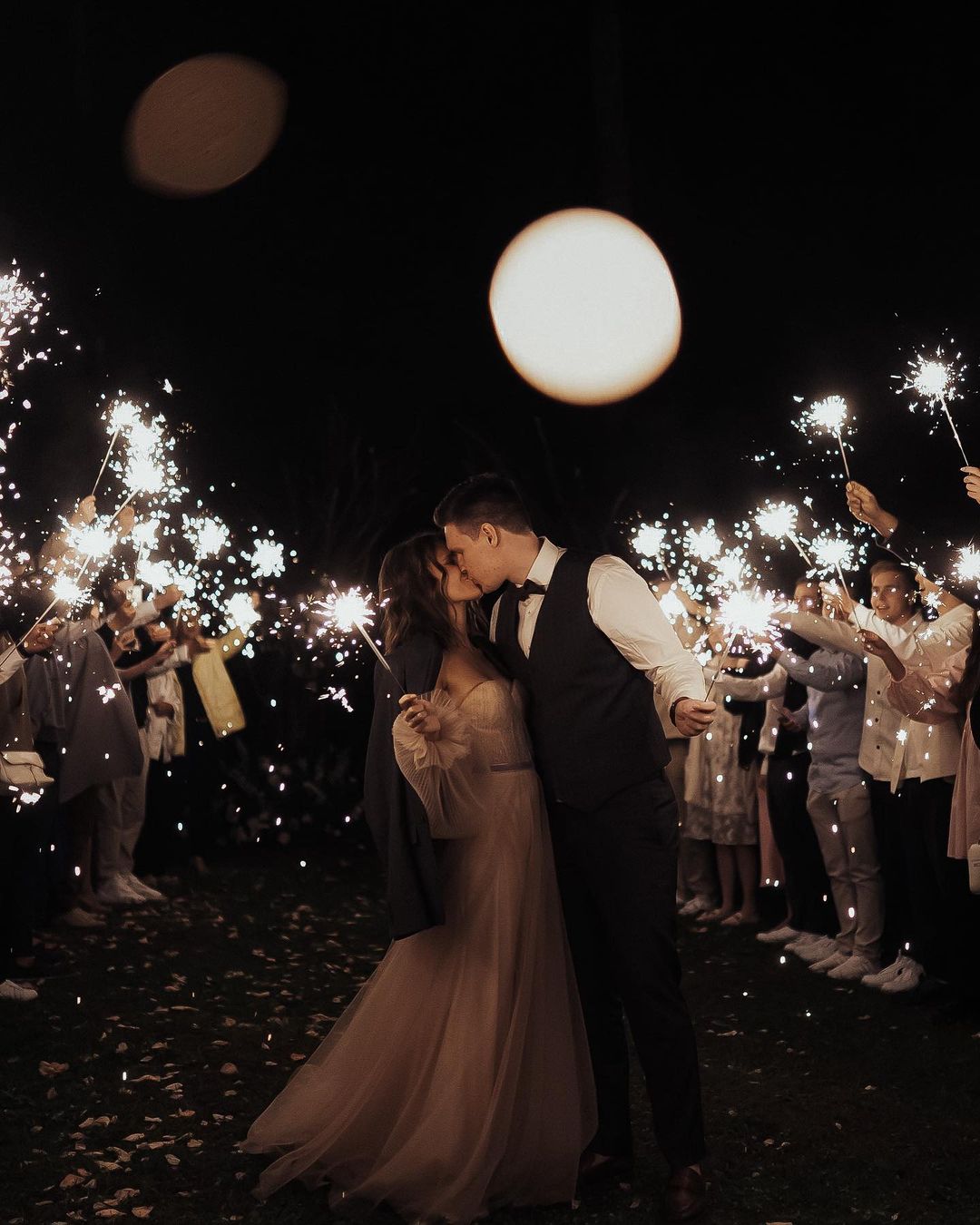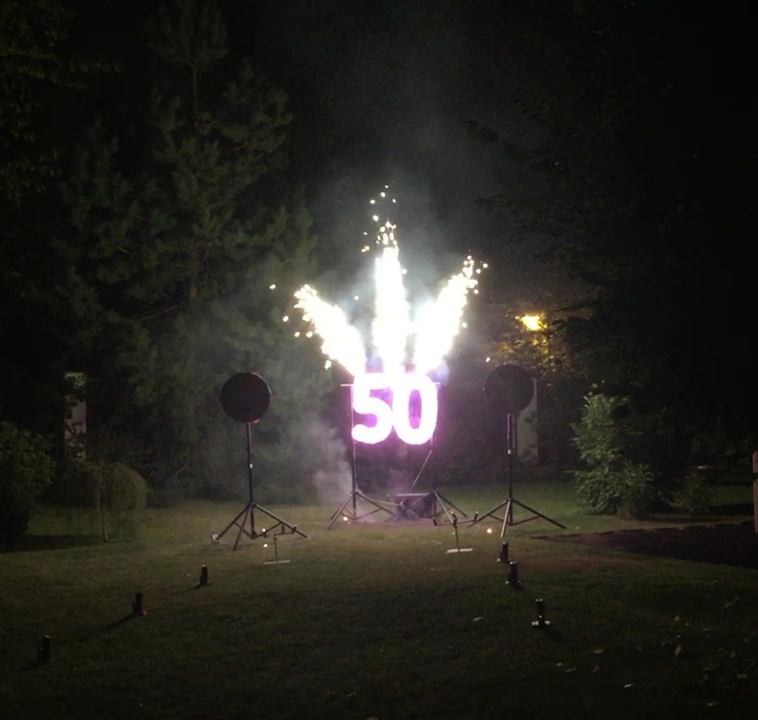 Фейерверк-шоу: огненное сердце и две буквы (инициалы молодых) с дополнительным светодиодным контуром