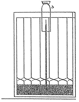 В середине диска пробивают шпальное отверстие, сквозь которое пропускается длинный стопин. Швермеры ставят в коробку, поплотнее, как пачку папиросных гильз, но головками вниз, а промежуток засыпают древесными опилками иди речным песком. Наконец, надевают на бурак крышку, также с запальным отверстием для стопина, к крышке прикрепляют короткий швермер головкой вверх и в дно его пропускают стопин. Запальный швермер можно вставить в крышку, вырезав в ней дыру соответствующего калибра. При спуске сначала сгорает запальный швермер, после чего следует взрыв и взлёт пучка снопом.