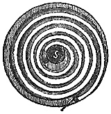 Навивка спирали начинается с центра и оканчивается на окружности спирали. Гильзу прикрепляют к шайбе с помощью длинной, во всю гильзу, полосы тонкой бумаги, пропитанной раствором селитры (нитрованной); для закрепления служит мучной клейстер, к которому также прибавлена доля селитряного раствора. Запал - на окружности, делается из стопина или запальной бумаги и жидкой подмазки. Между кольцами спирали по всему протяжению гильзы помещают папковый простенок. Наконец, в самый центр (S) помещают коротенький бриллиантовый или цветной фонтанчик, соединённый стопином с хвостом трубки.