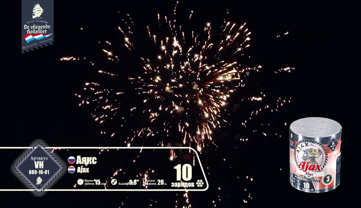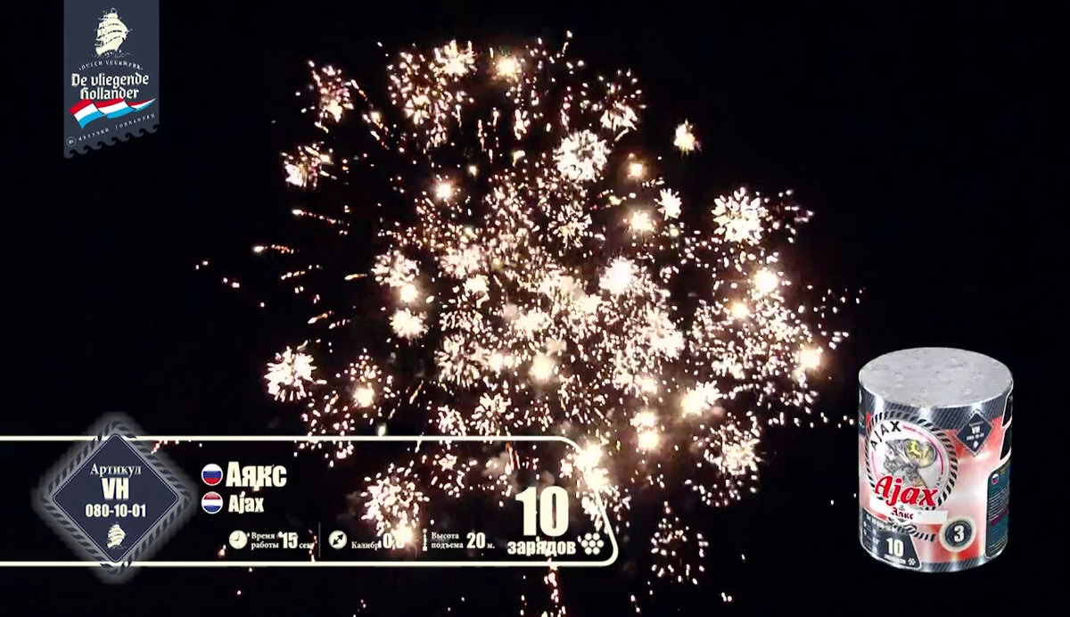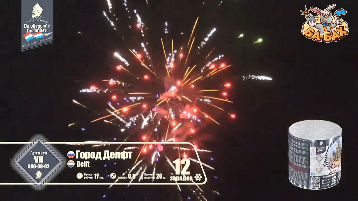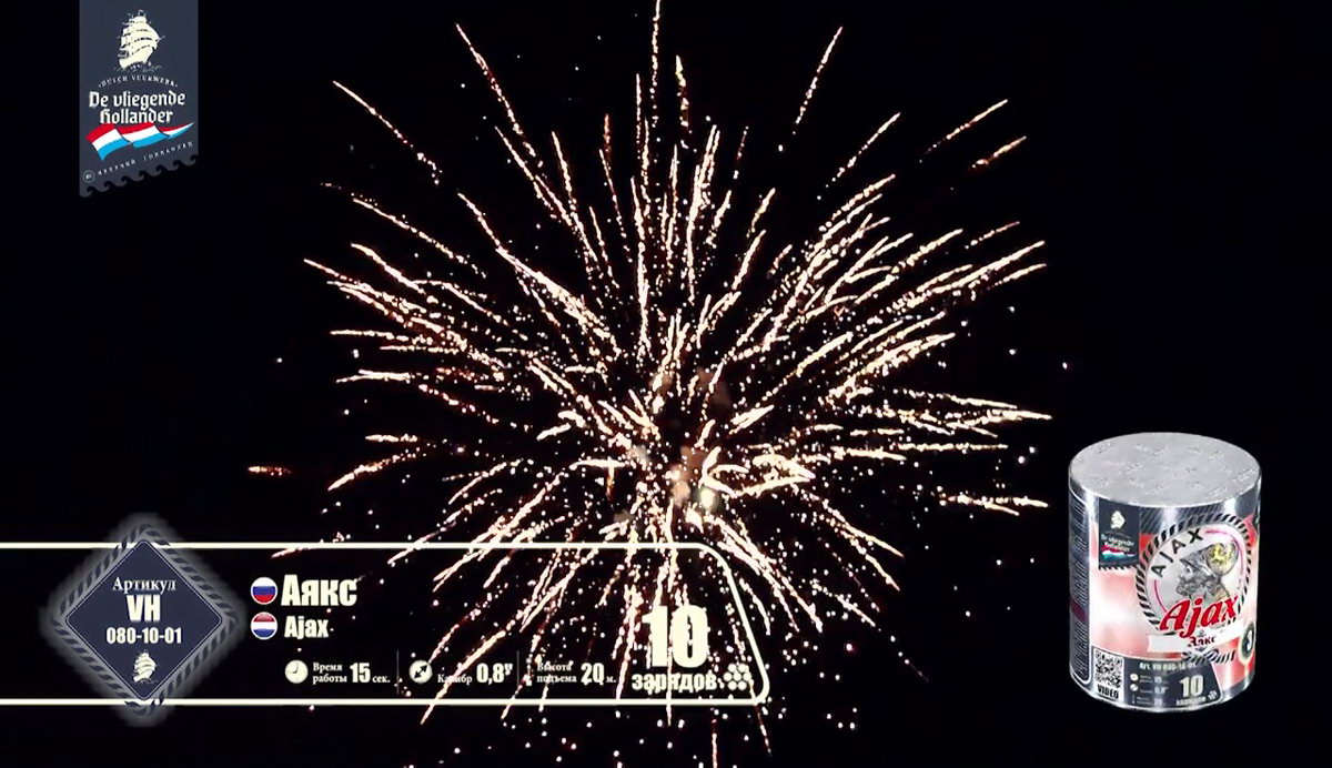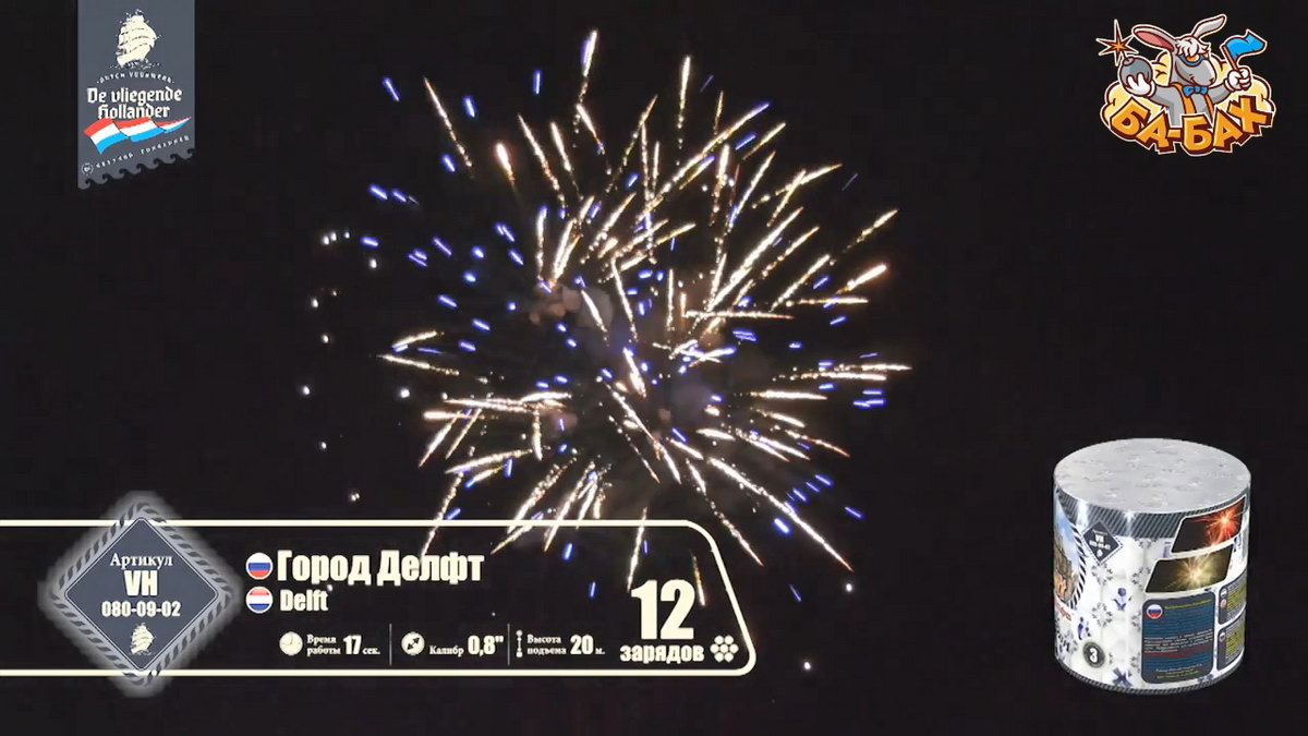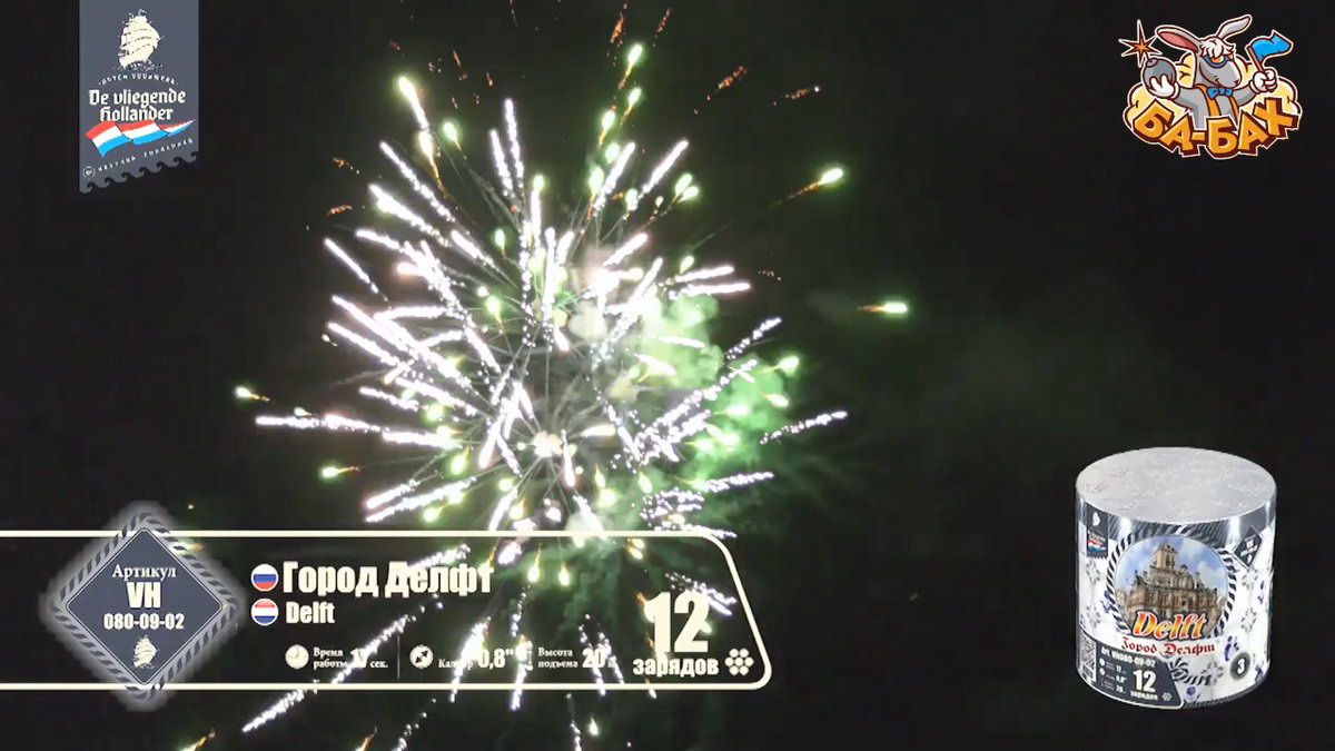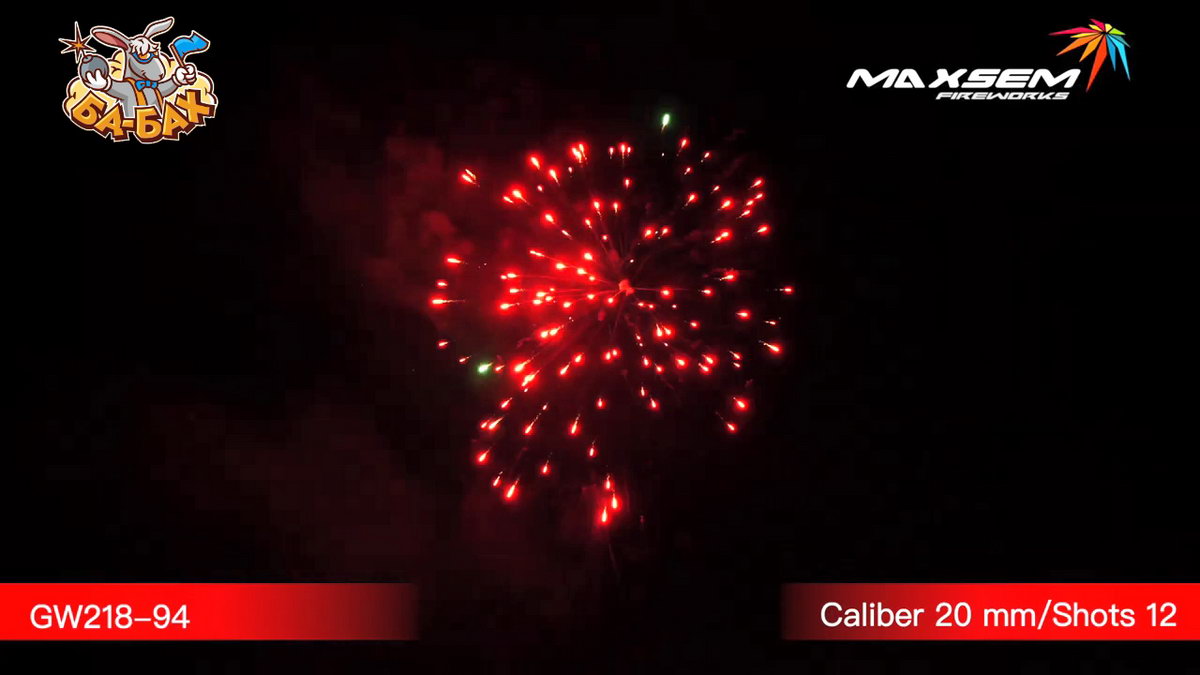 | Эффекты фейерверка: | Пион, Хризантемы, Мерцание, Парчовая корона, Трещащие облака |