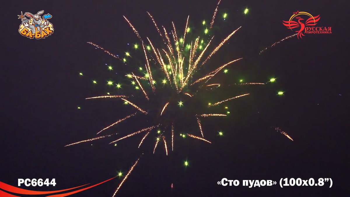 | Эффекты фейерверка: | Трещащие облака, Пион, Парчовая корона, Кокос, Звезды, Мерцание |