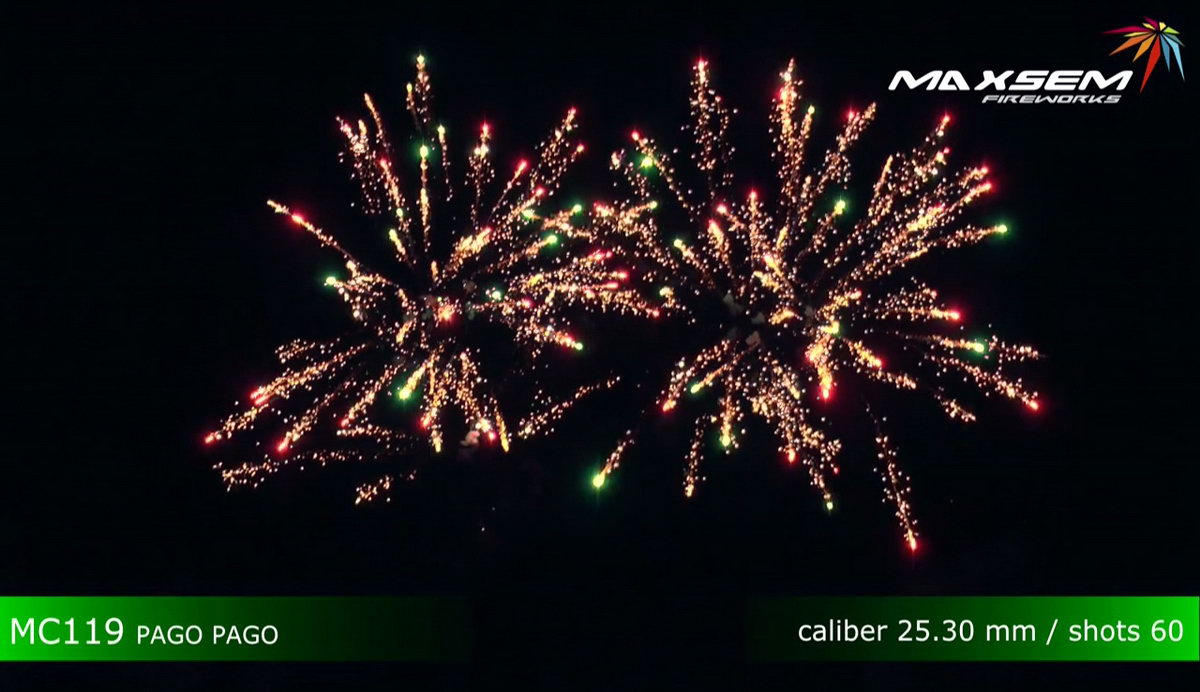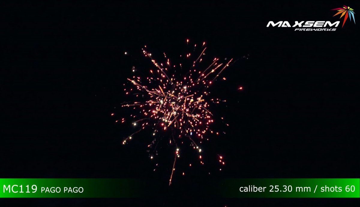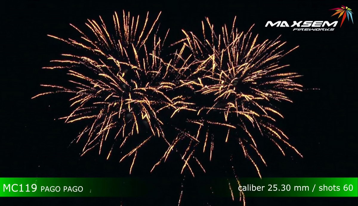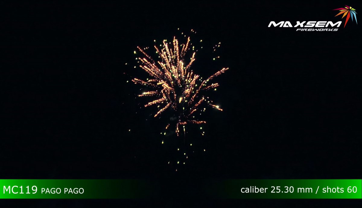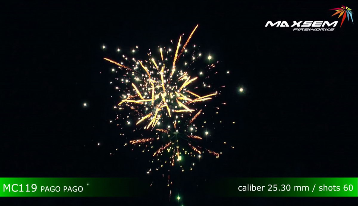 | Эффекты фейерверка: | Парчовая корона, Искристая ива, Кокос, Веер, Комета, Мерцание, Слива |