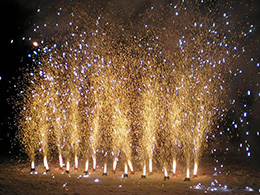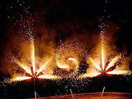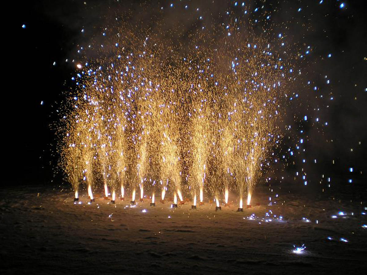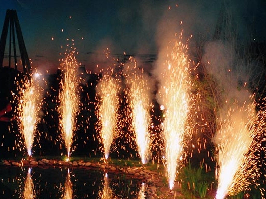 Наземная пиротехника - великолепное дополнение к любой праздничной программе. К этой группе фейерверк-шоу относят все эффекты, предназначенные для использования на открытом воздухе, с радиусом безопасной зоны не более 5 метров: фонтаны, огнепады, динамические фигуры, горящие надписи и символы. Преимуществ у наземной пиротехники немало: