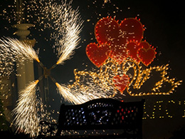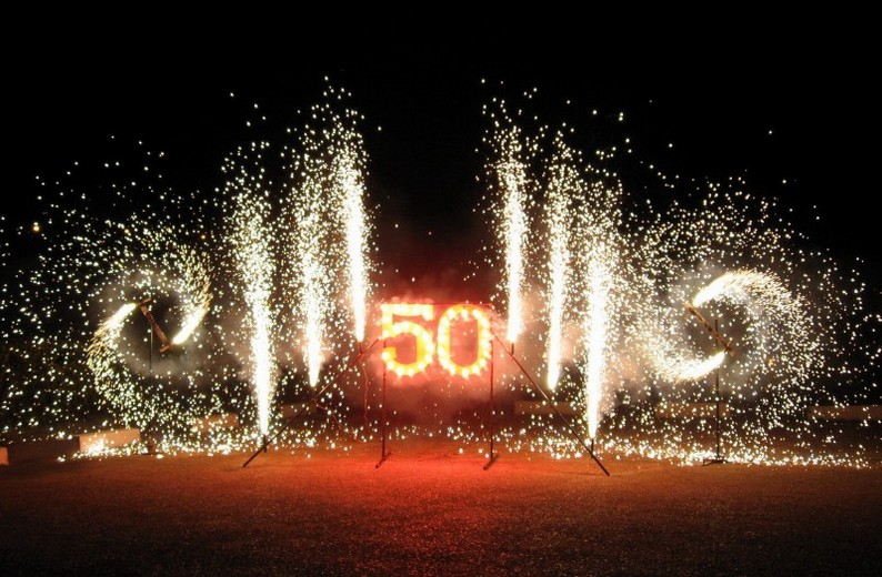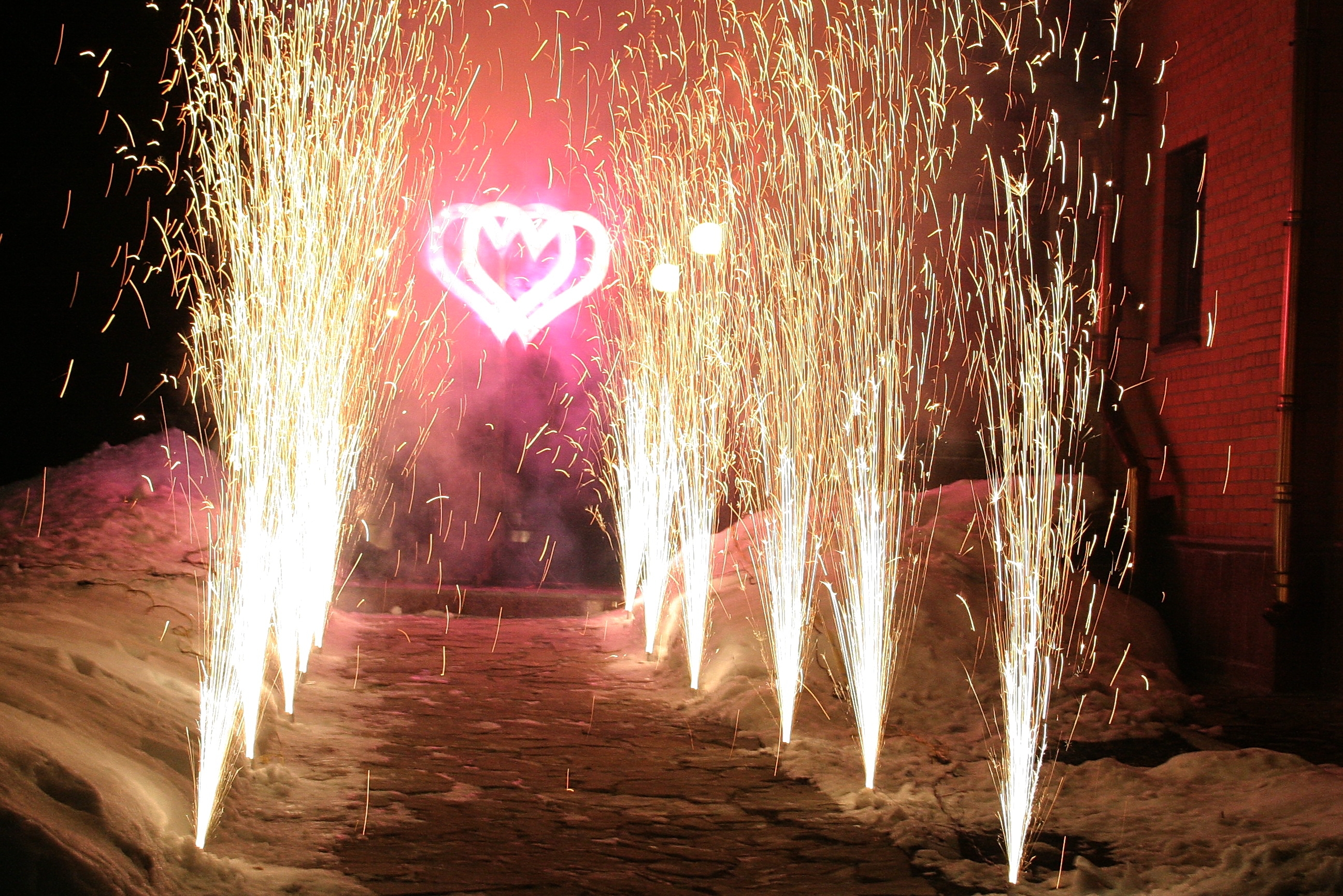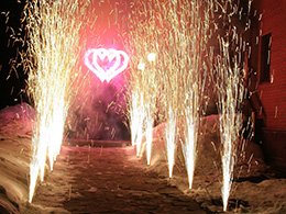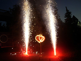 - в отличии от высотного или паркового фейерверка, наземная пиротехническая композиция может нести конкретную информацию: название и логотип компании, имена молодоженов, конкретные изображения;