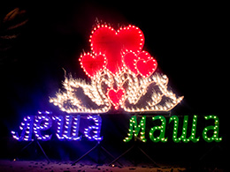 Обратите внимание, что огненные композиции нестандарно большого размера, с большим количеством букв (более 15), или состоящие из двух и более строк, могут быть достаточно дорогими и сложными в реализации. При выборе места для демонстрации горящих фигур крайне желательна площадка с жестким покрытием, асфальтированная или бетонированная.