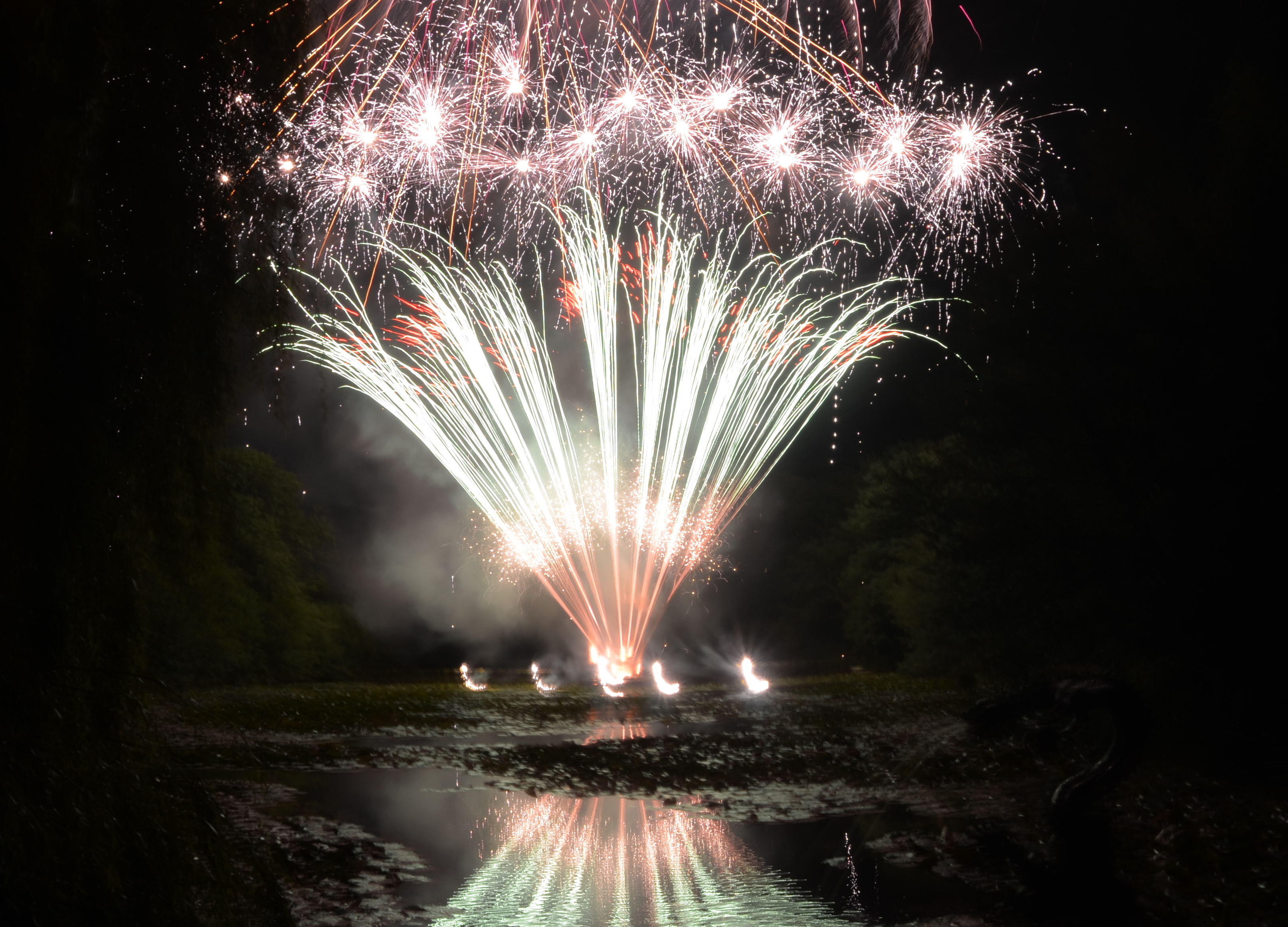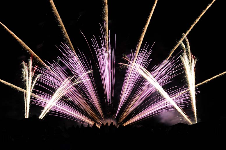 Отсюда главное правило при запуске парковых салютов: никаких помех между зрителями и фейерверками! Высотную батарею можно спокойно отстреливать издалека, из-за деревьев - это никак не повлияет на конечный эффект. А вот парковый фейерверк запускать за деревьями бессмысленно: зрители увидят лишь "верхушку айсберга". Идеальное место для парковых фейерверков - большая поляна, лужайка или площадка. Зона безопасности таких фейерверков относительно невелика, порядка 35-50 метров от точки пуска до зрителей. Удвоить эффект от паркового салюта можно, разместив его на берегу небольшого пруда или озера, такие нередко встречаются в благоустроенных парках: расходящиеся веера и бураки, отражаясь в водной глади, производят невероятное впечатление! Но даже если подходящего водоема поблизости нет, хорошо подобранный парковый фейерверк может быть великолепным зрелищем, ничуть не менее эффектным, чем дорогостоящее высотное пирошоу.