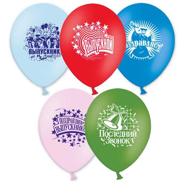 Воздушные шарики из качественного натурального латекса, производитель - BelBal (Бельгия) или Gemar (Италия). Шарики ассорти различных цветов с рисунками и надписями на тему "Выпускной" или "Последний звонок". Шарики обработаны составом Hi-Float для максимальной продолжительности полета, и наполнены гелием.