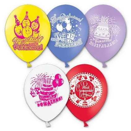 Воздушные шарики из качественного натурального латекса, производитель - BelBal (Бельгия). Шарики ассорти различных цветов с рисунками на тему "День рождения". Шарики обработаны составом Hi-Float для максимальной продолжительности полета, и наполнены гелием.